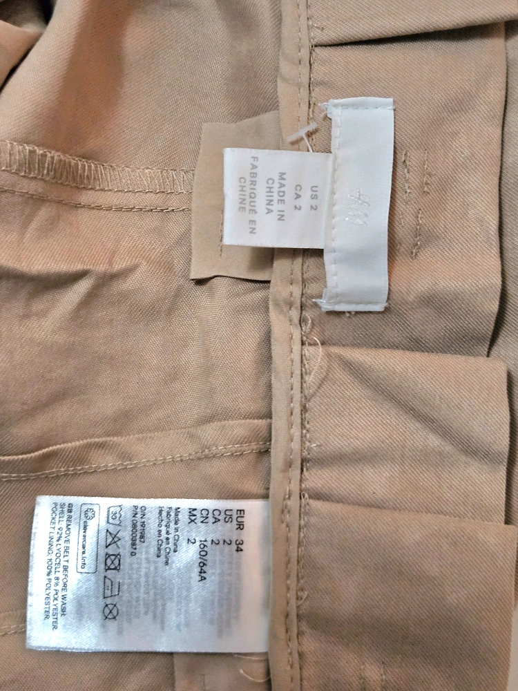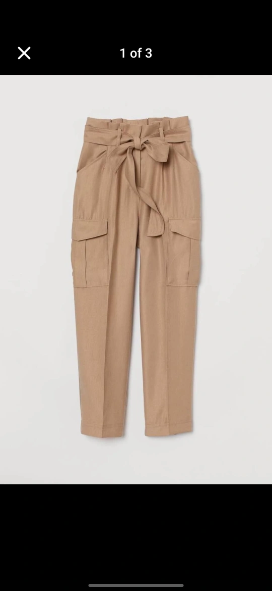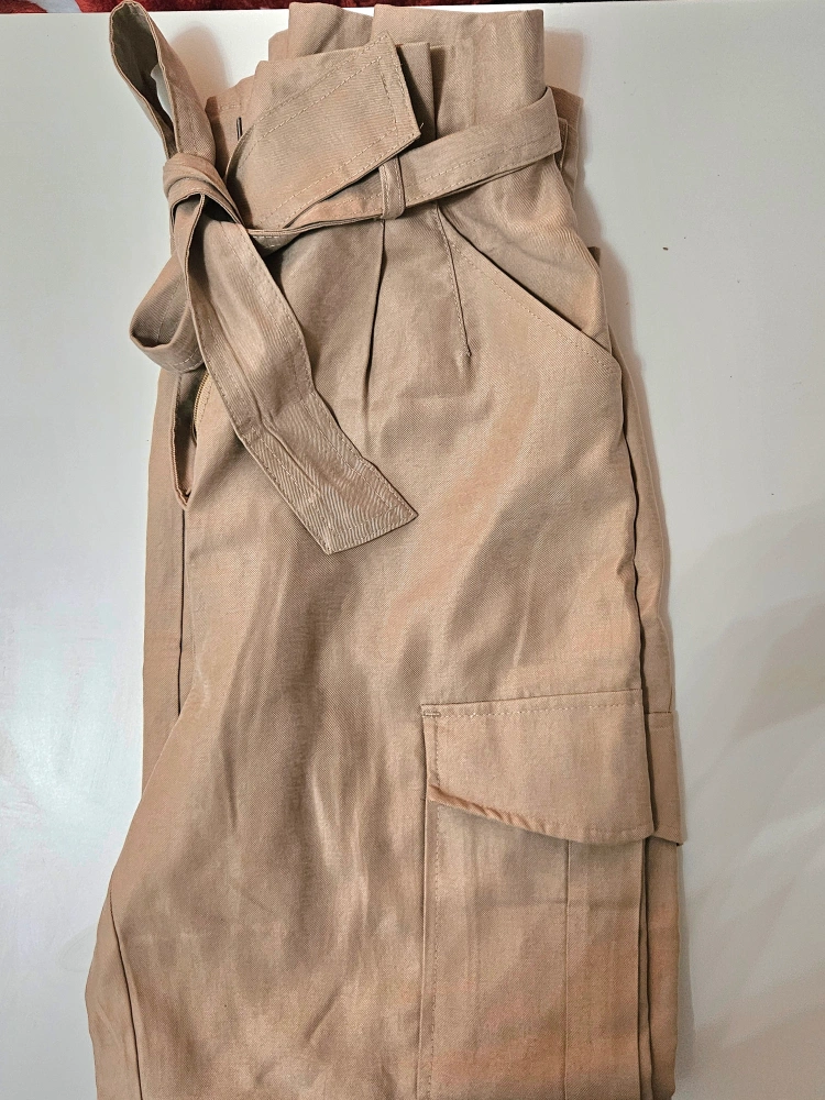 117Women's beige cargo pants. High-waisted with a tie belt. Two side pockets. Cropped length. Excellent condition, never worn, took the tag off so I couldn't return it. Send me your best offer! Pickup is near Eaton Center and cash is preferred.