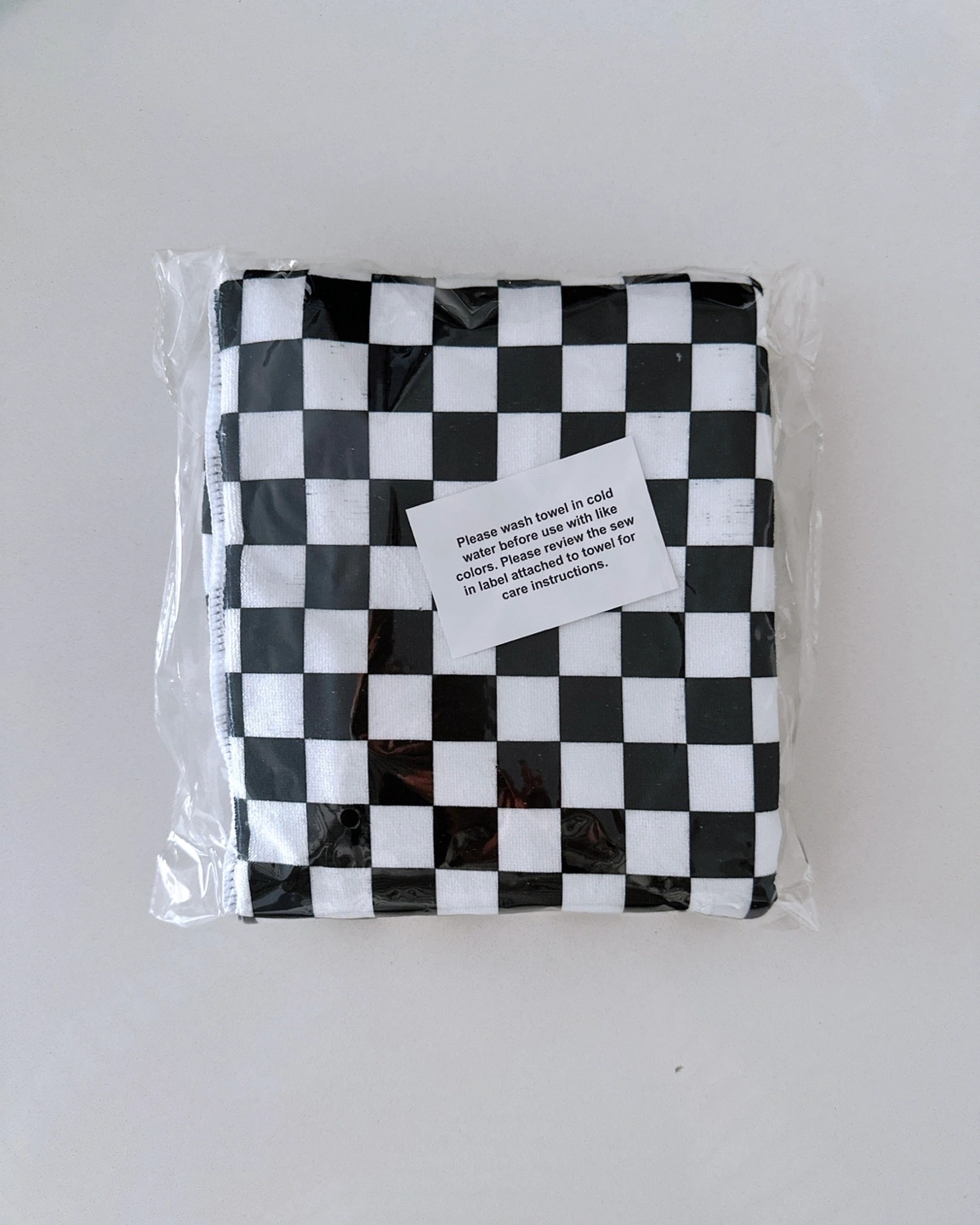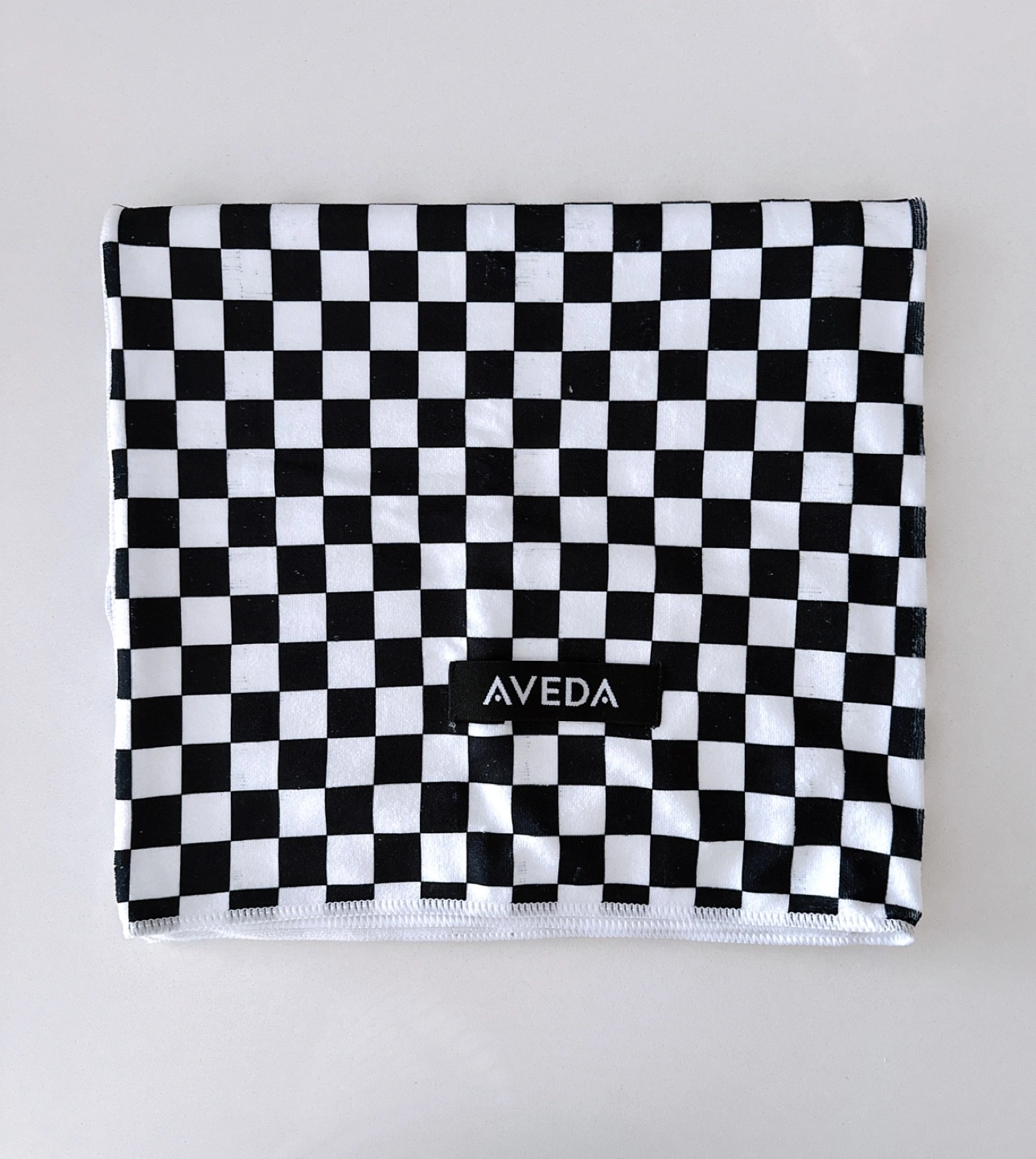 This chic black-and-white checked hair towel, featuring an Aveda logo patch, is made from absorbent microfiber cotton terry. Designed to be gentle on your hair, it reduces friction to help prevent damage and frizz while quickly soaking up moisture.