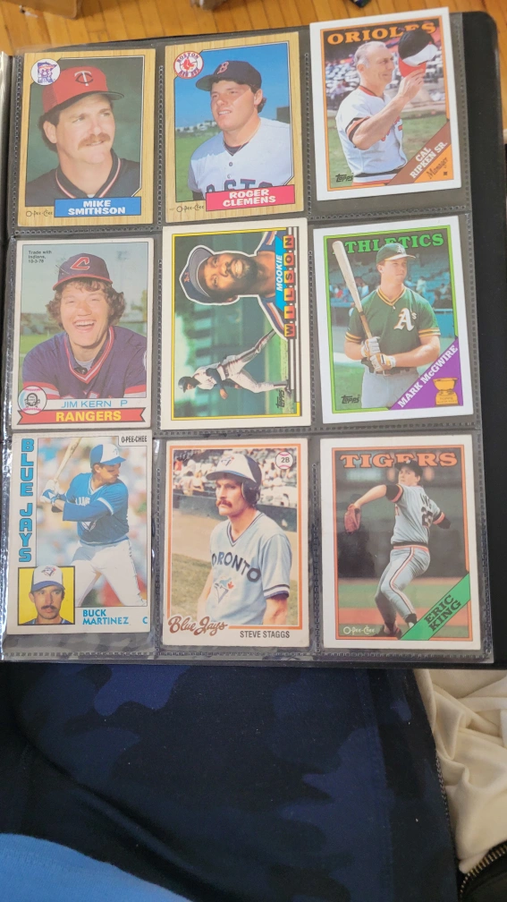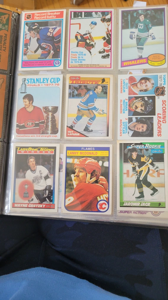 Large collection of vintage hockey and baseball trading cards. Various players and teams represented. Cards in a binder. Great for collectors.
