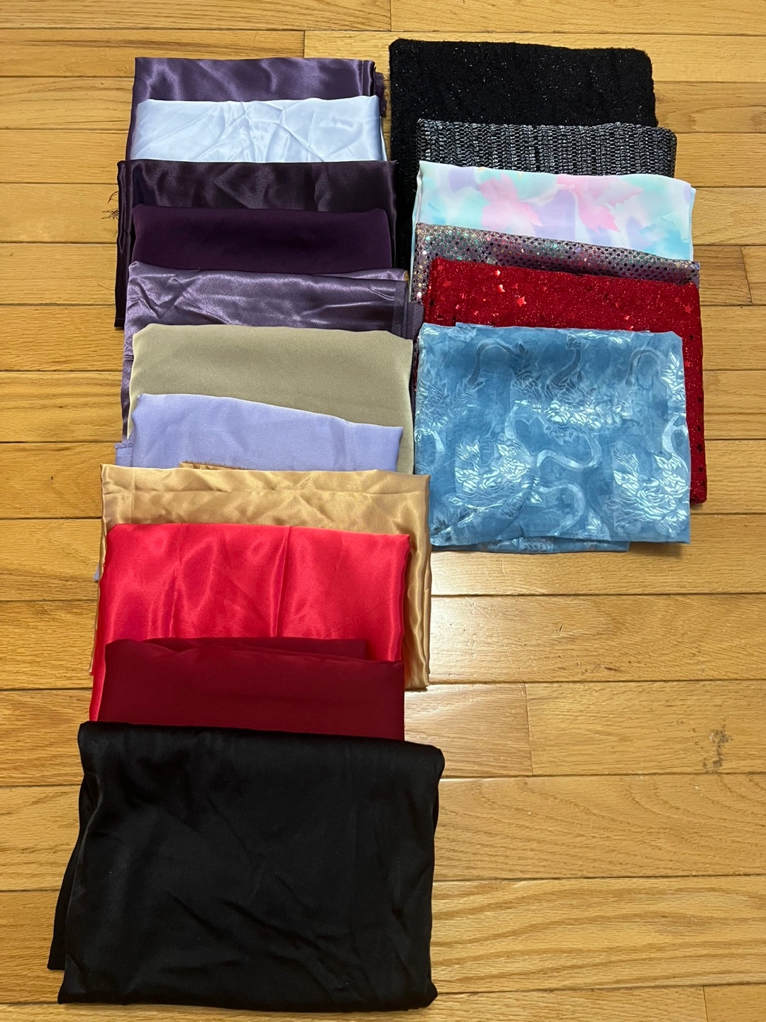 First column is satin fabrics, second column is various fabrics including sequins.