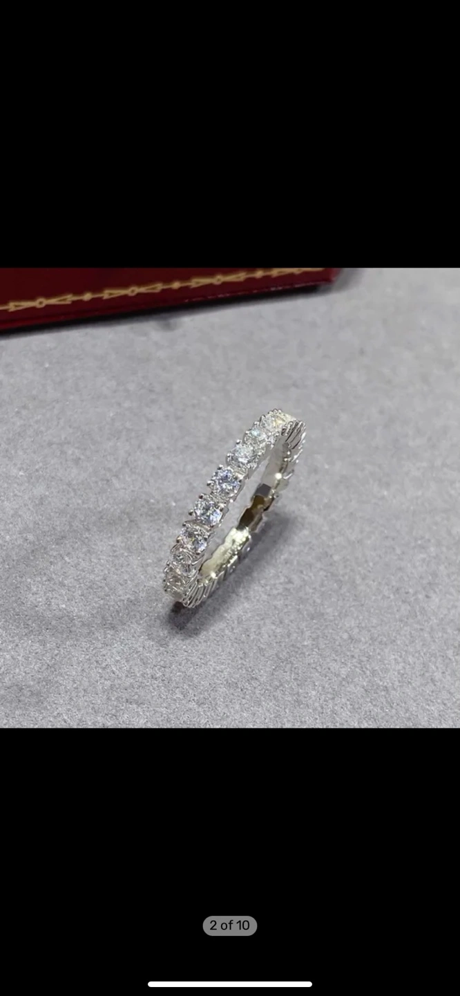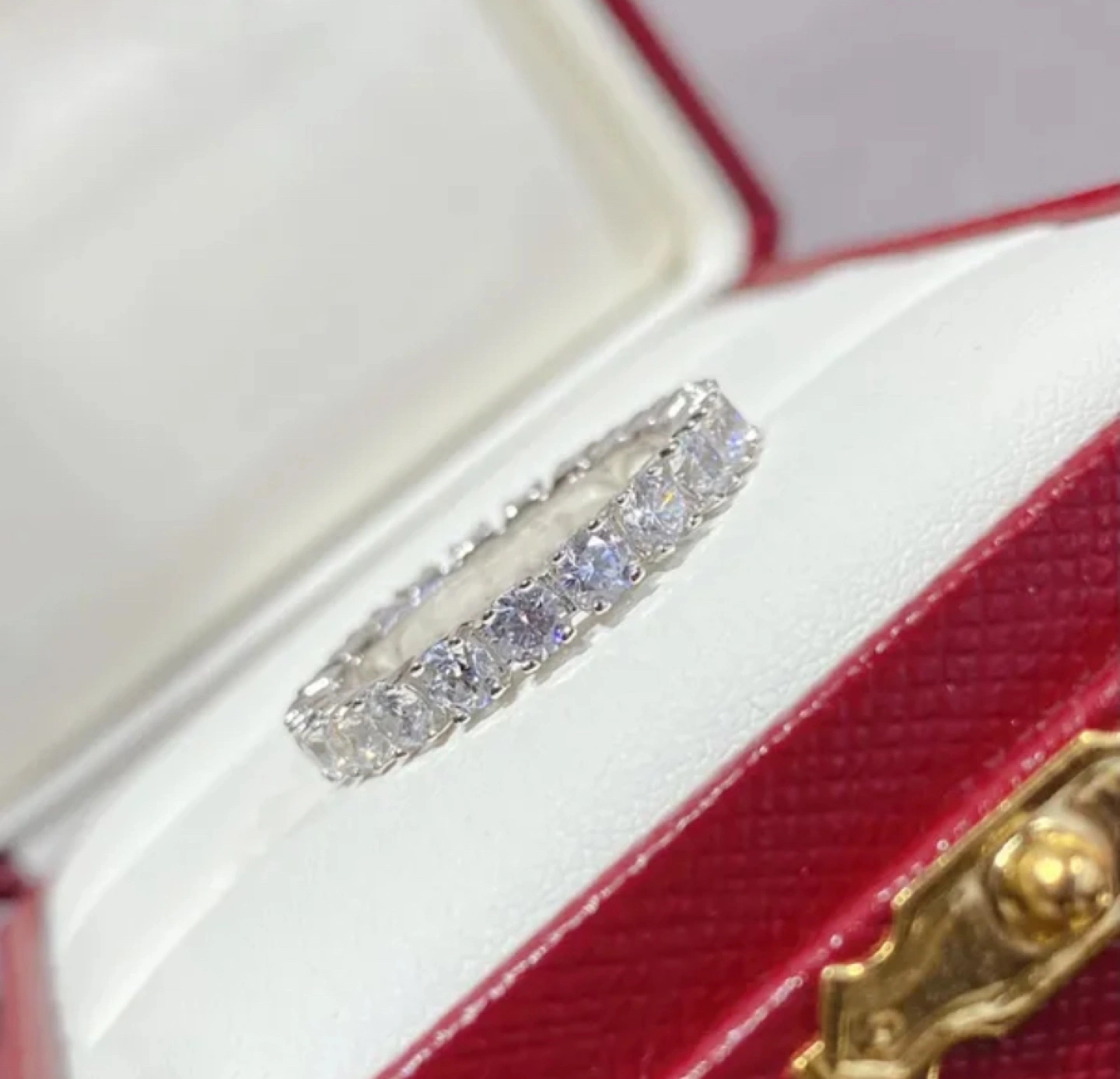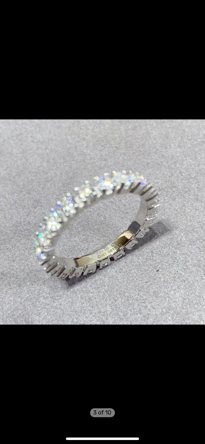Stunning eternity band. Features numerous brilliant-cut diamonds. Comes with Cartier box and bag. Elegant and timeless design.