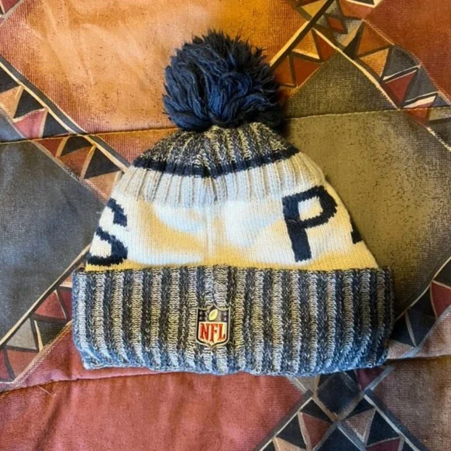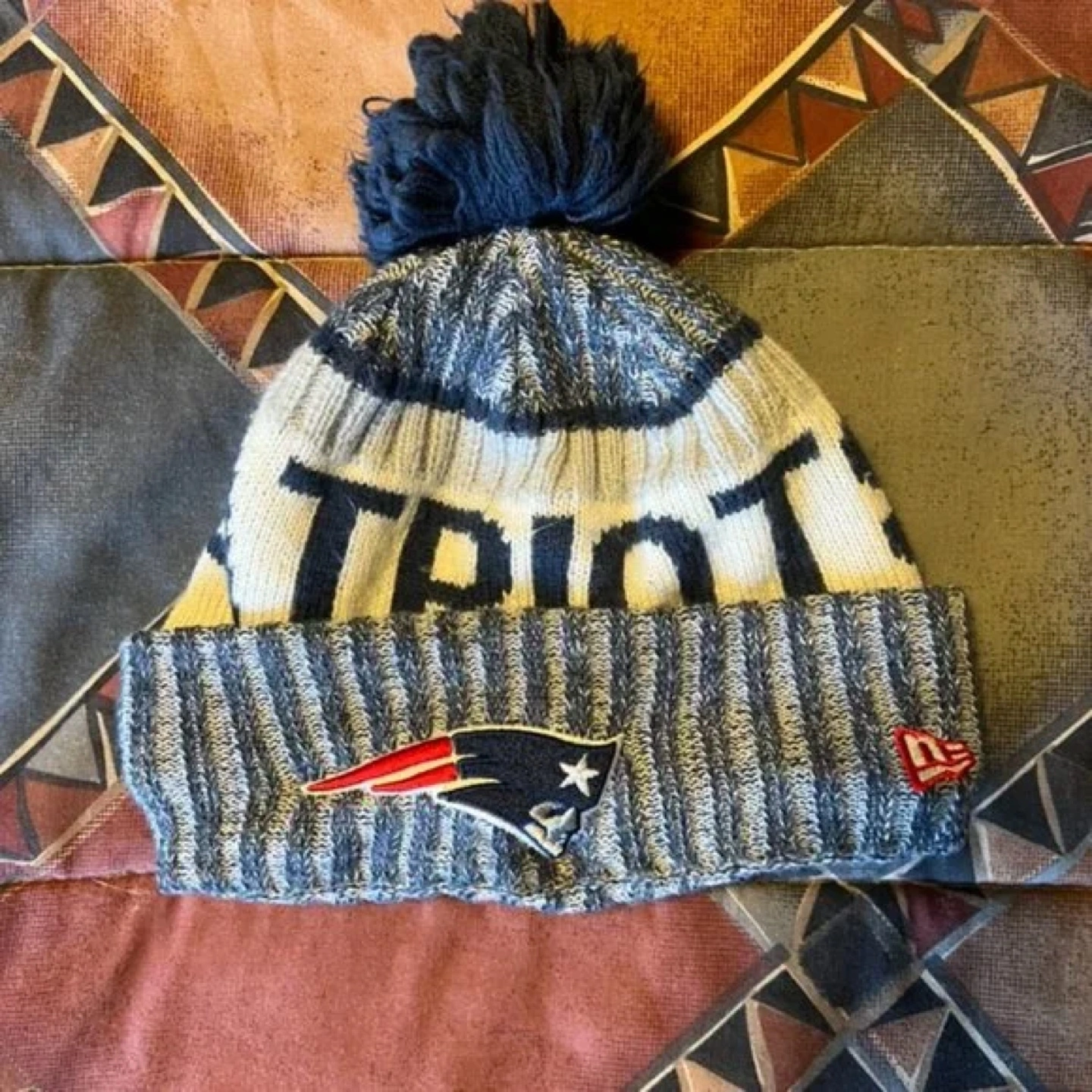 Knit New England Patriots beanie. Features team logo and wordmark. Pom pom on top. One size fits most. New Era label.