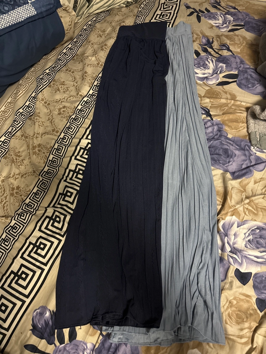 225Pair of pleated maxi skirts. One navy blue, one light blue. Both have elastic waistbands. Flowy and comfortable. Great for spring and summer. IT’S AVAILABLE ‼️ Cash Only Pickup Tomken and Bloor Mississauga