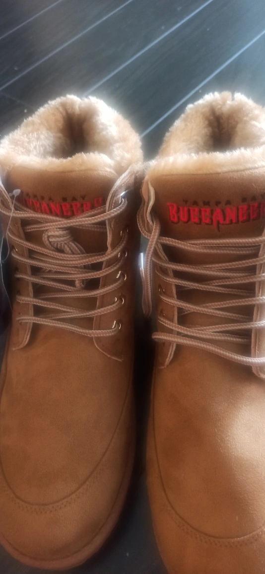 Tan suede boots. Lace-up closure. Faux fur lining. Wavy outsole. Brand new with tags. size11