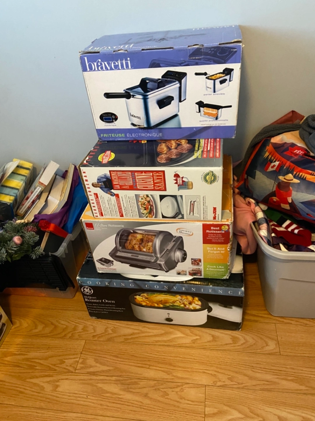 74Three new-in-box kitchen appliances. Includes a Bravetti deep fryer, an EZ Store rotisserie, and a GE roaster oven. Perfect for the home chef. All new in box Asking $75 each