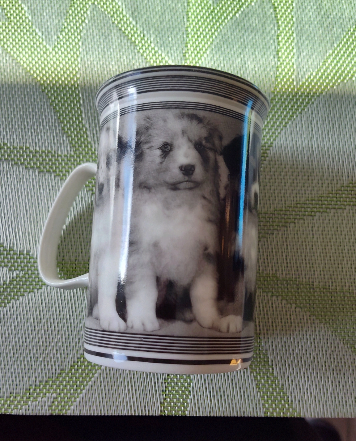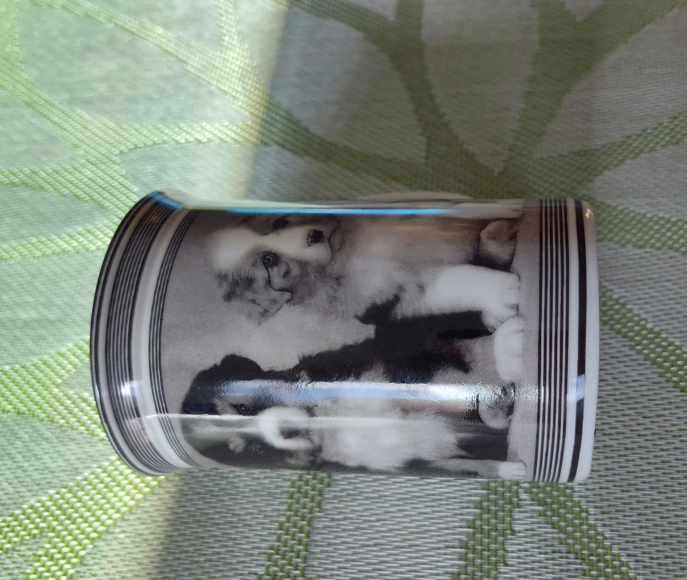 Adorable mug featuring adorable puppies. Black and white photo. China/chine. Nice addition to any dog lover's collection. Pick up in Lisgar area of Mississauga.