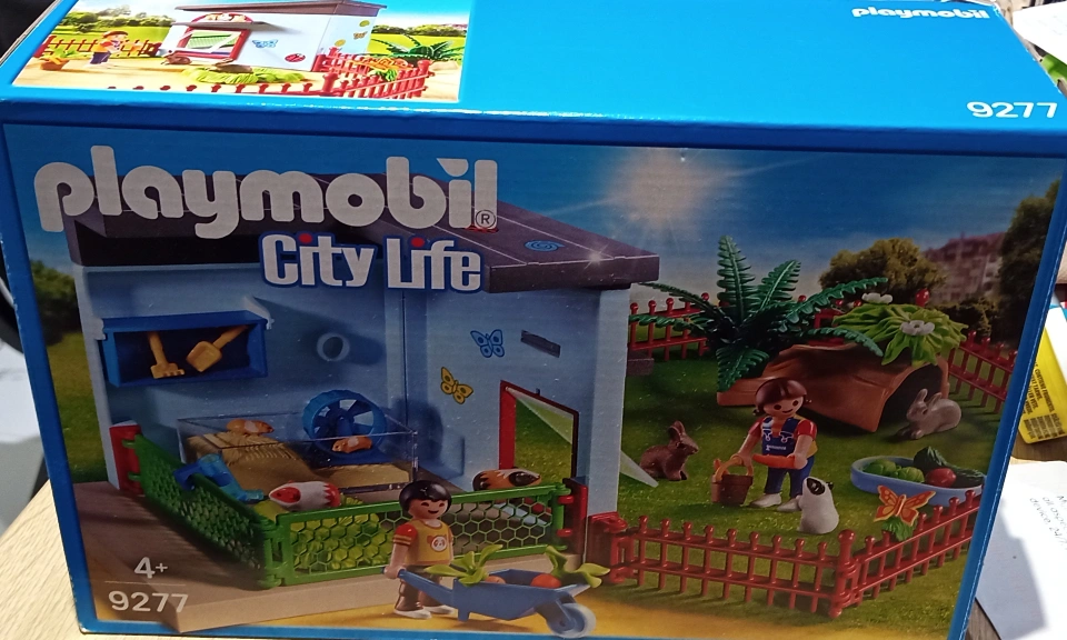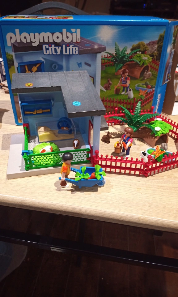 Playmobil City Life small animal enclosure playset. Includes all building, figures (hamsters, guinea pigs and rabbits) and accessories. Suitable for ages 4+