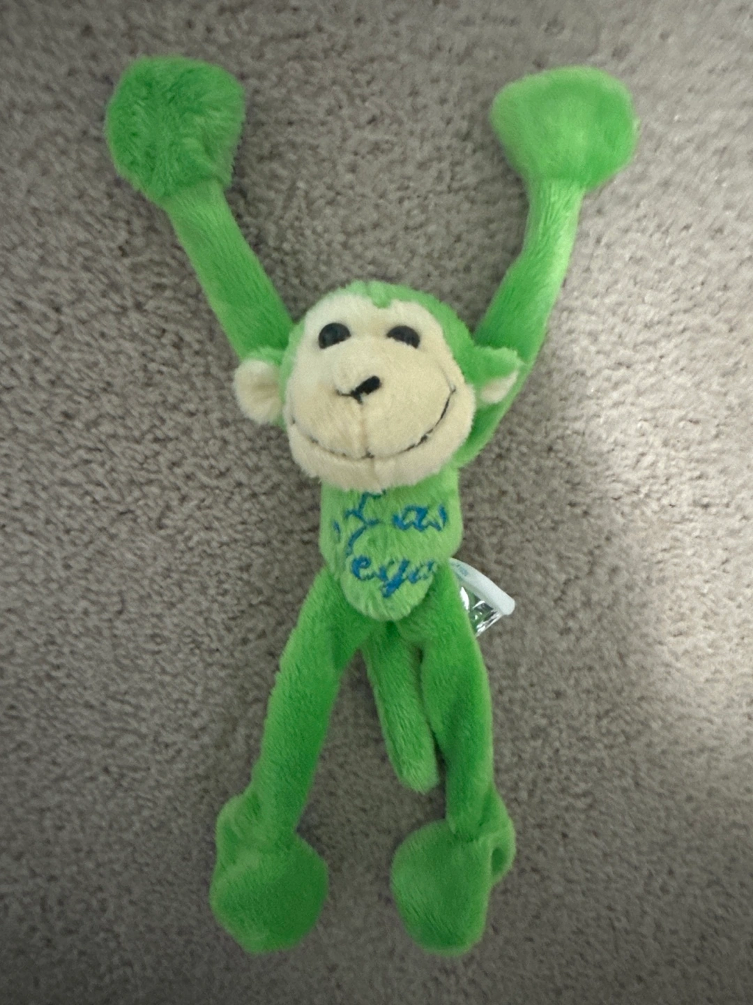 Las Vegas magnetic, Adorable green monkey plush toy. Long arms and legs. Small size, perfect for a child's backpack or car. Embroidered Las Vegas !
