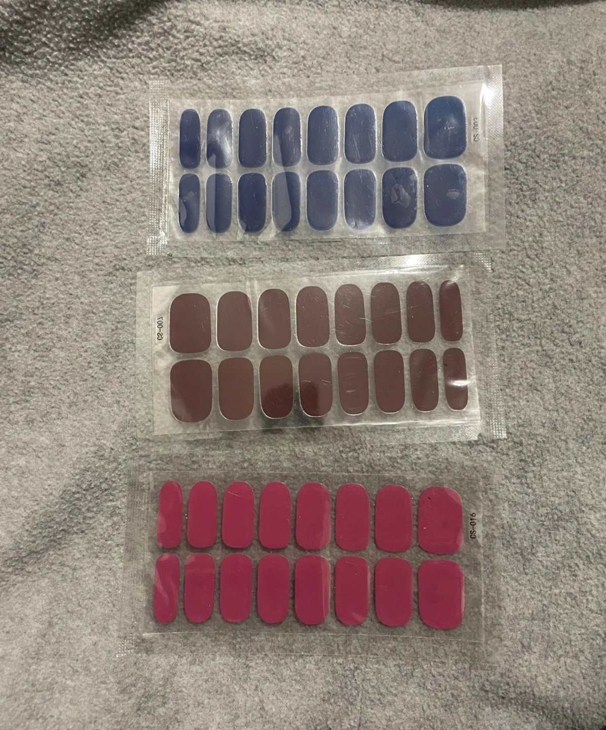 Three packs of Kiss nail art strips. New, unopened. Shades include dark purple, maroon and navy. Perfect for a quick nails set. 3 for $5