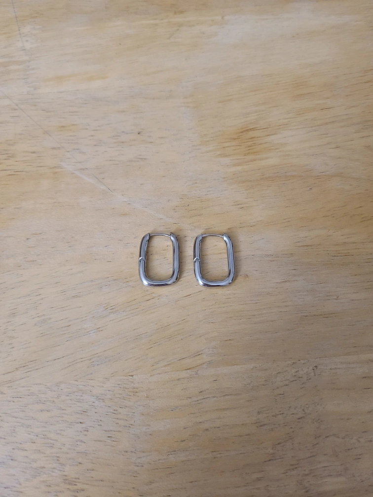 Pair of sterling silver rectangle hoop earrings. Simple design. Almost brand new bought it around $40.