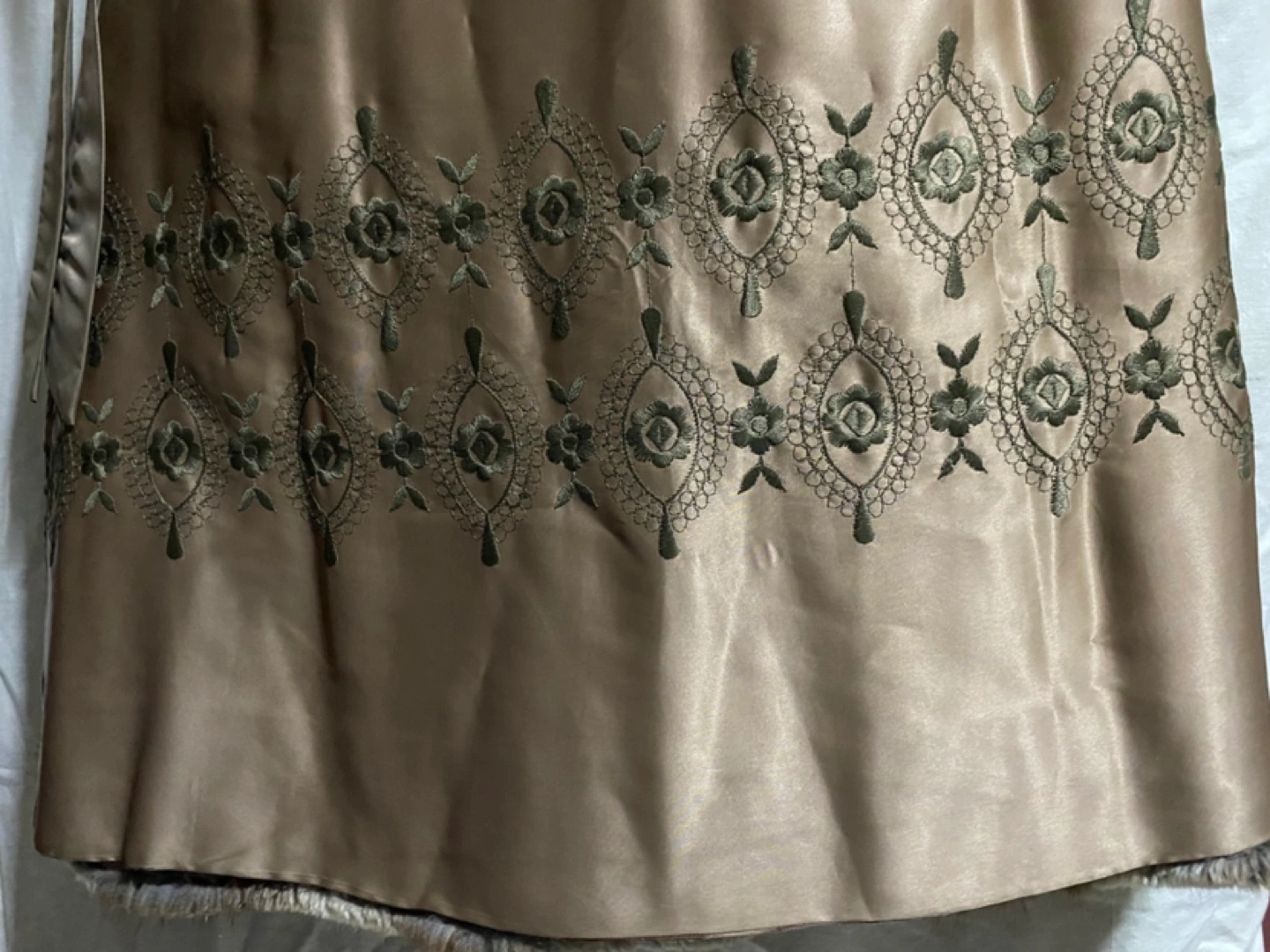 3/4 length fully lined in satin with the most beautiful embroidery. Pristine Condition, classic style, absolutely luxurious feel