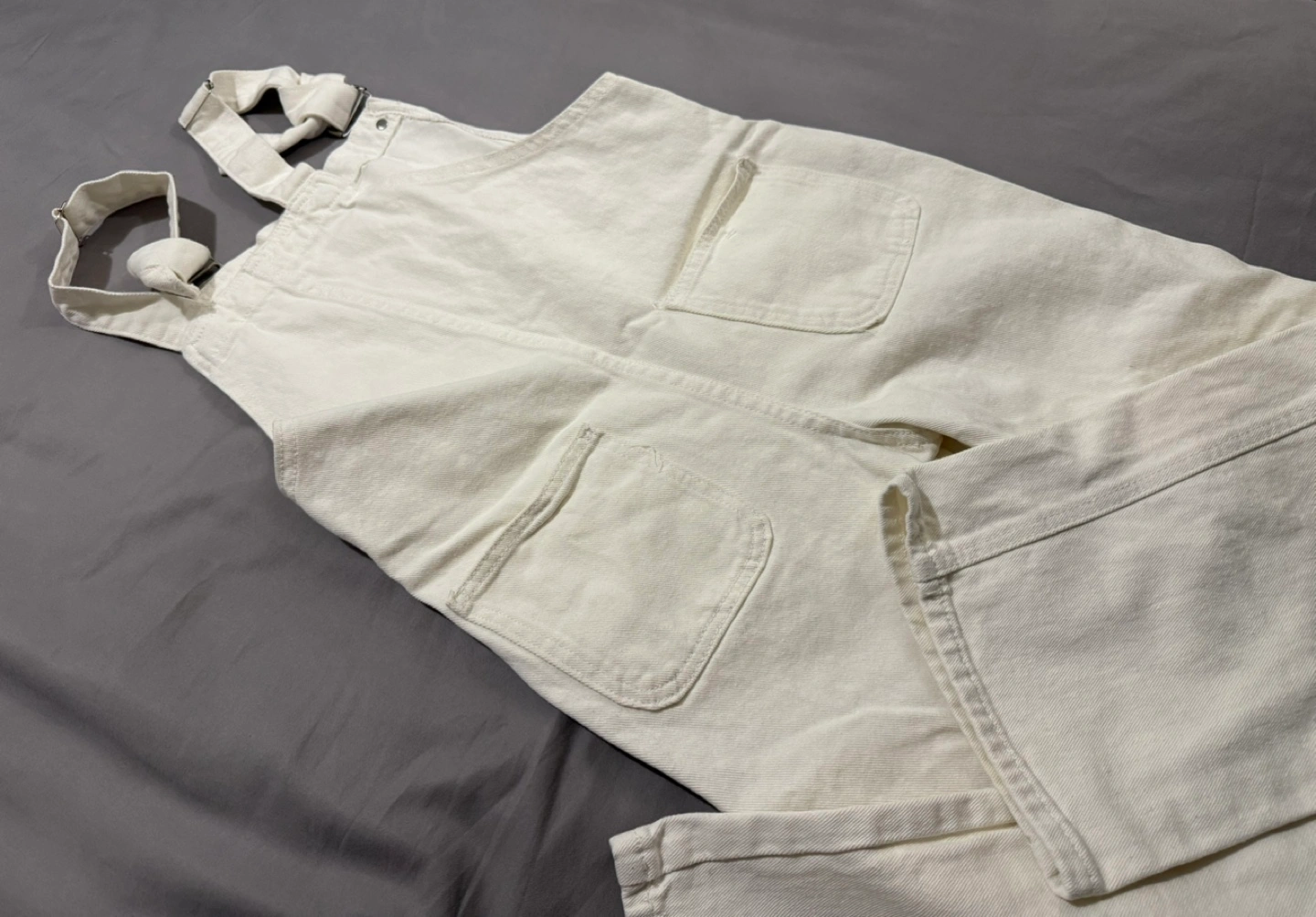 Women's off-white denim overalls. Adjustable straps. Multiple pockets. Relaxed fit. Excellent condition. Pick up : Elmhurst, US Supermarket OR *Manhattan : 9 Avenue nearly subway (E train 50 st station πŸš‰ ) Cash πŸ’΅