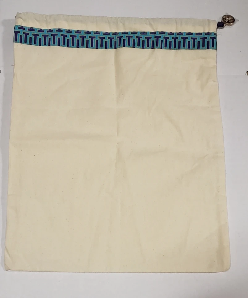Off-white cotton dust bag. Features a teal and navy patterned band. Gold-tone Tory Burch logo drawstring closure. Cash only for pickup in Queens NY. Check my other listings for more discounts!
