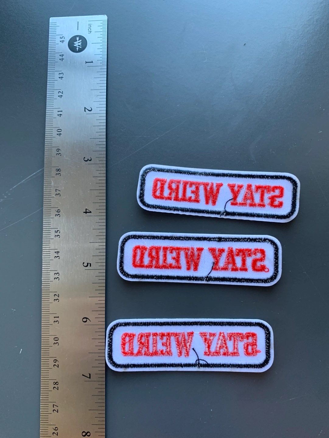 π Three "Stay Weird" Embroidered Patches