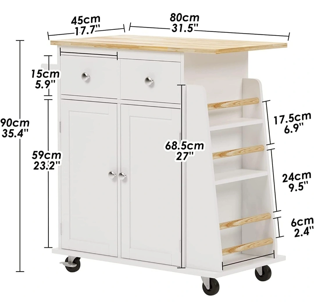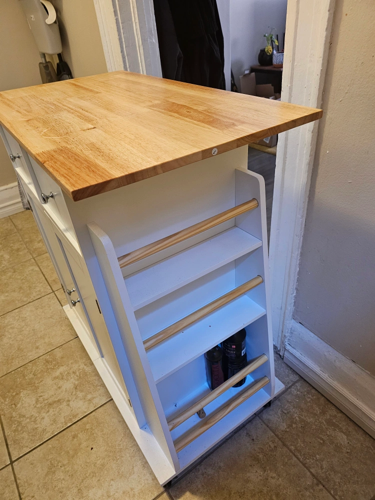 White Kitchen Island Cart with Butcher Block Top