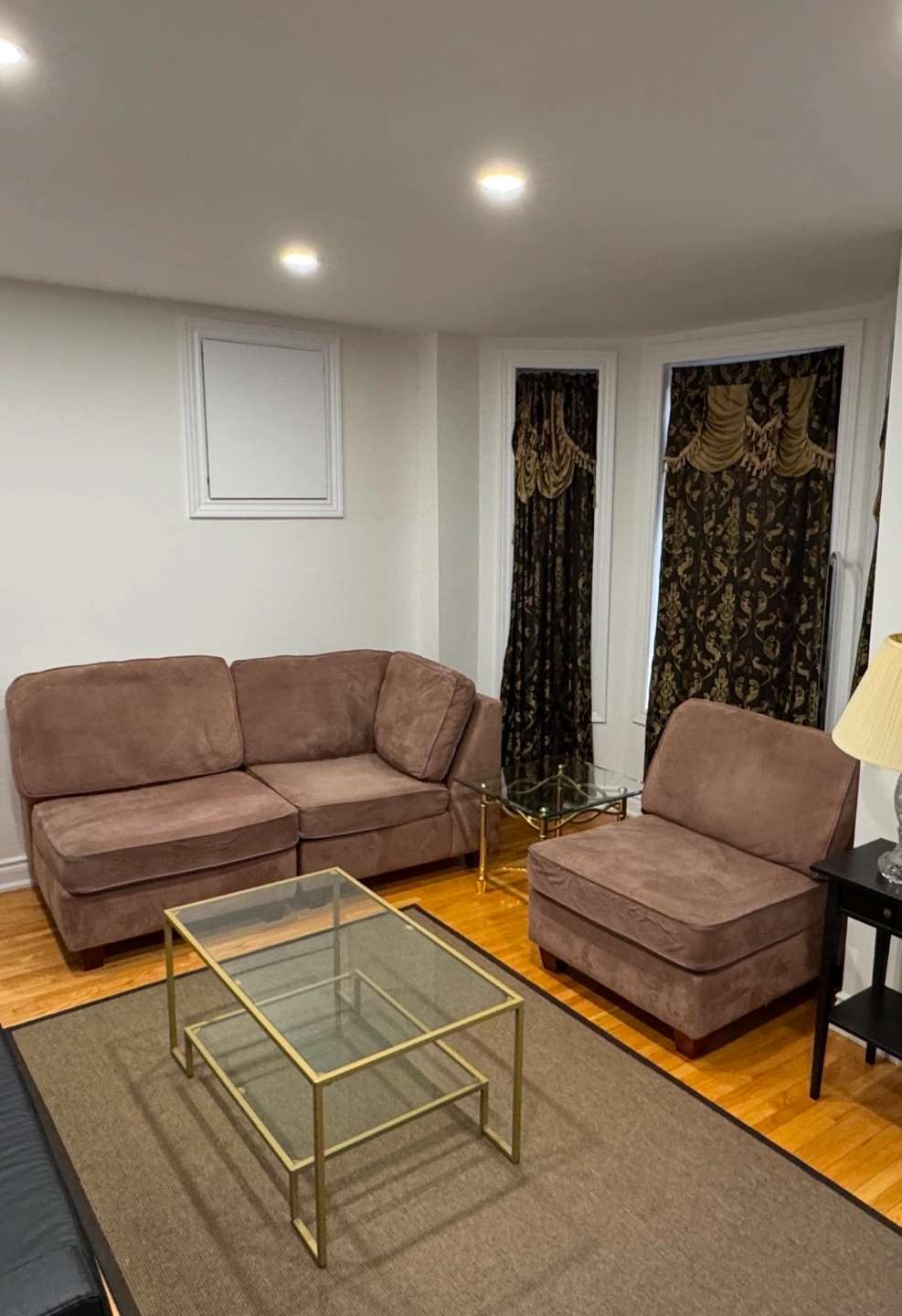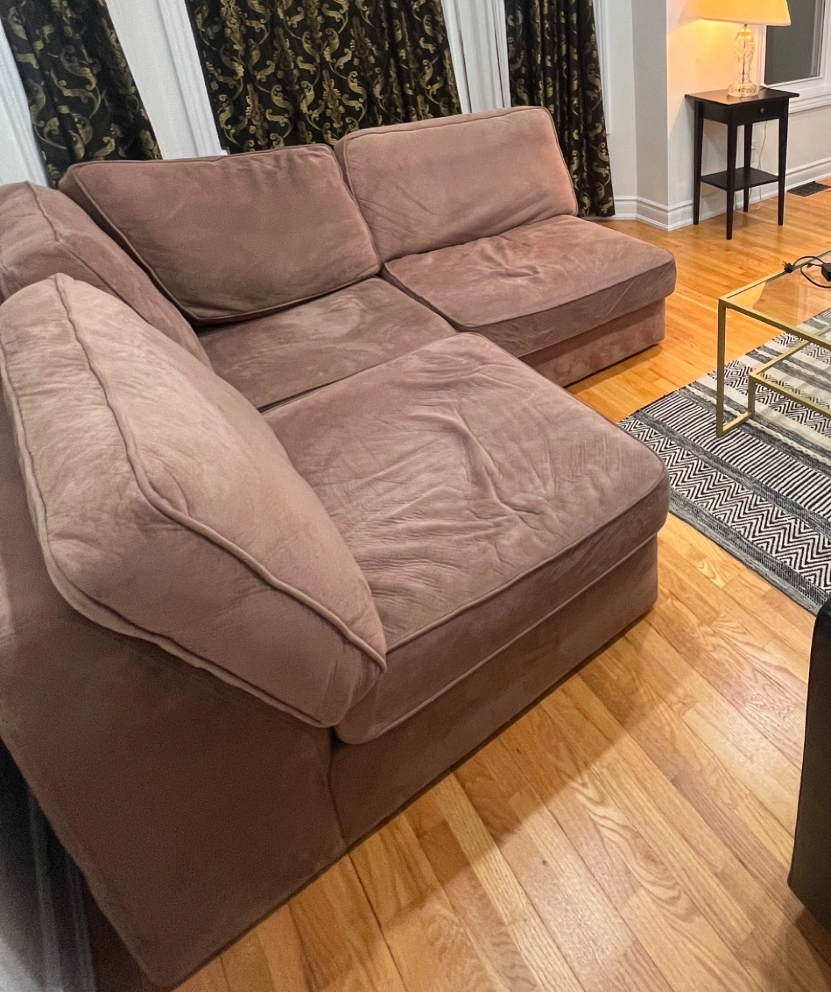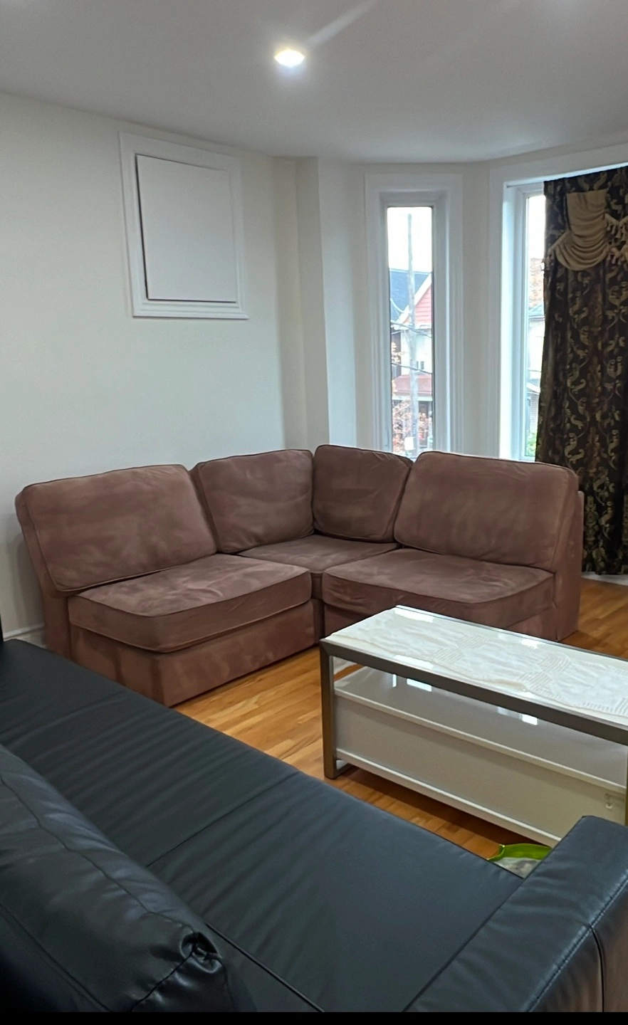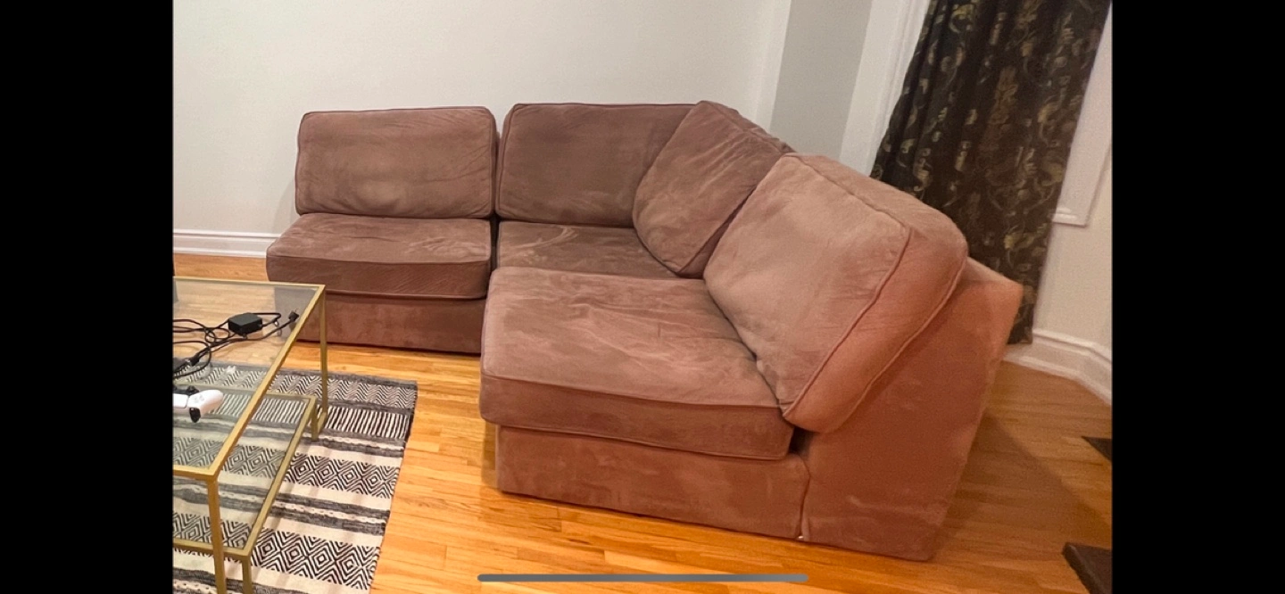 Comfortable brown modular sectional sofa. Durable velvet fabric upholstery. Great for living room. 3 pieces which can be made into a corner or straight line. Easy to assemble and rearrange.