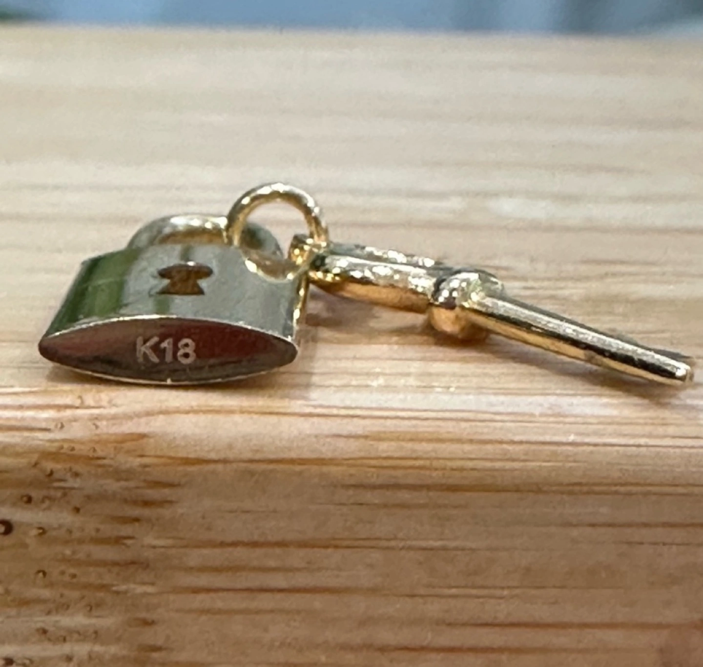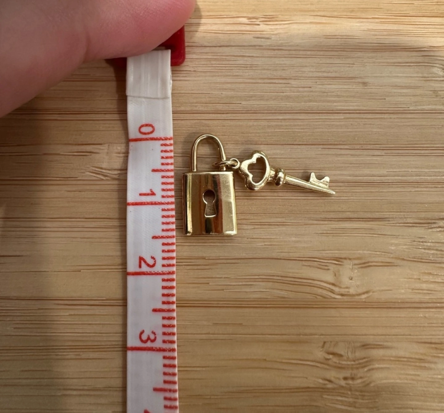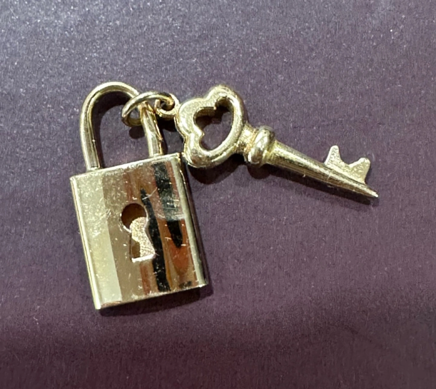 Adorable gold lock and key charm. Small and delicate. Perfect for adding to a necklace or bracelet. Used like new, lock and key pendant.