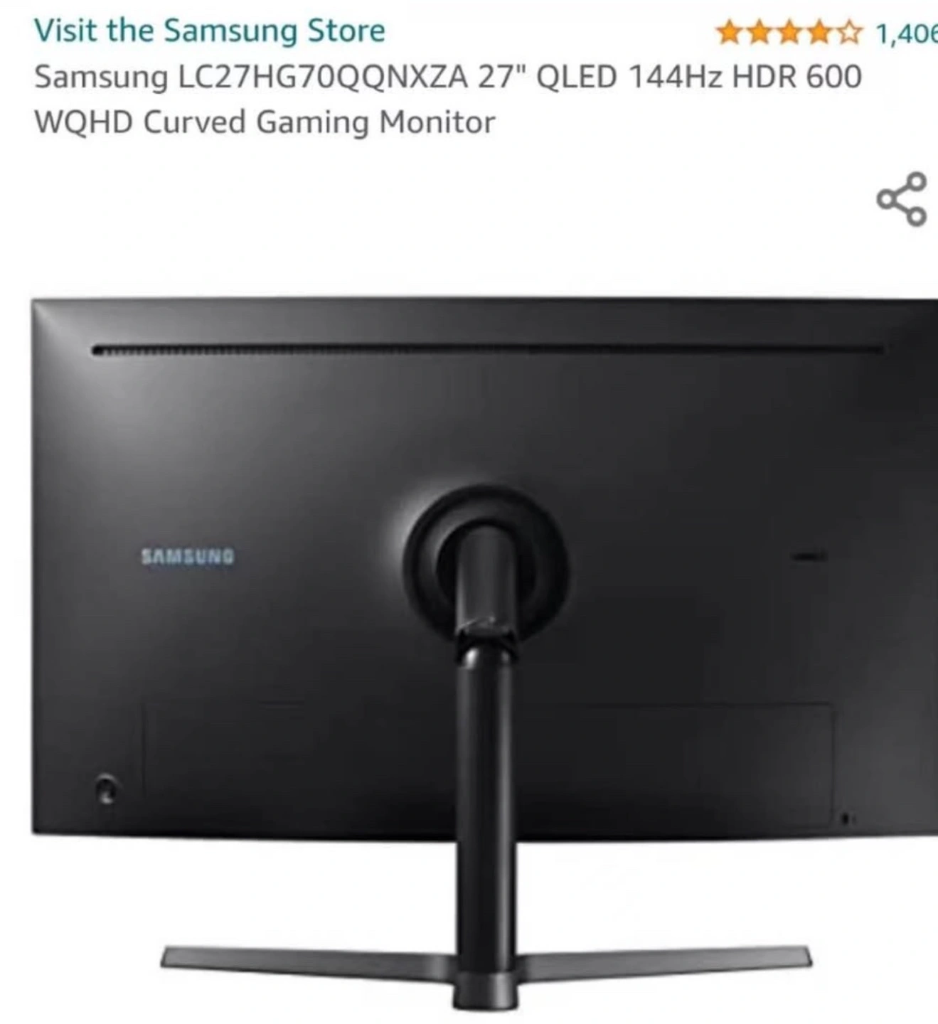 27 inch curved gaming monitor. QLED display. 144Hz refresh rate. HDR 600. WQHD resolution. Excellent condition. Minor cosmetic wear.