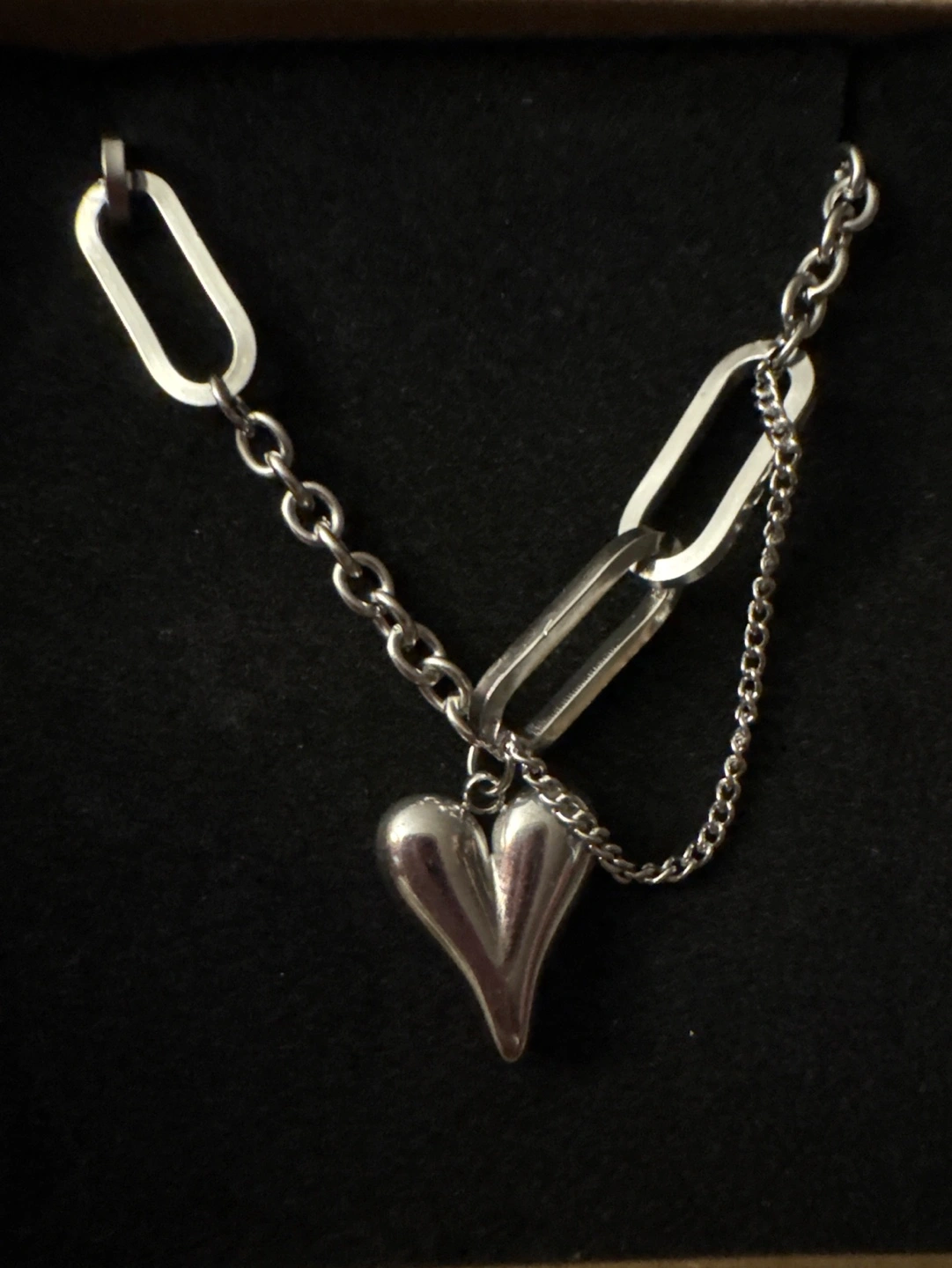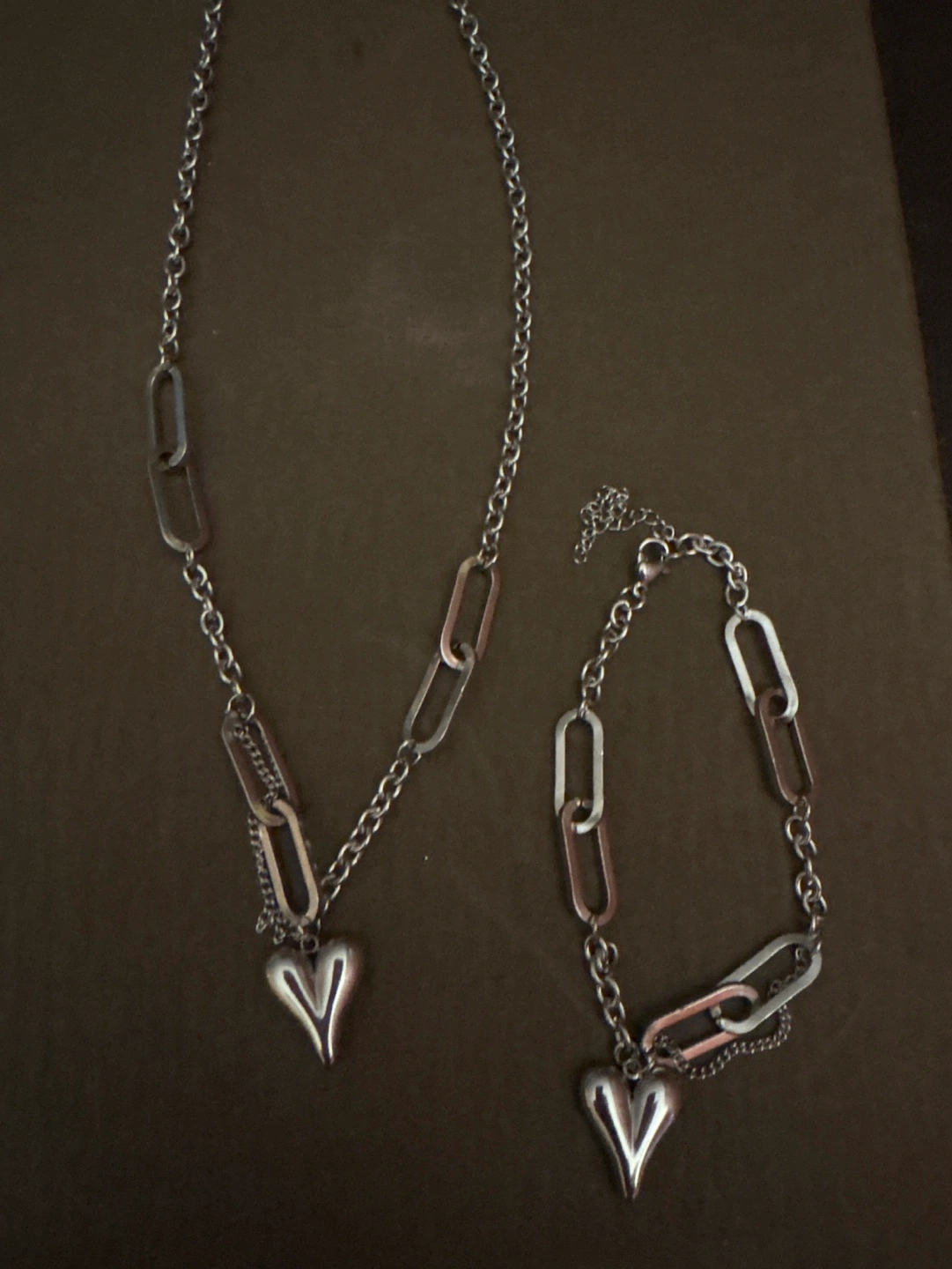 18K Gold SS silver Heart Necklace and Bracelet Set