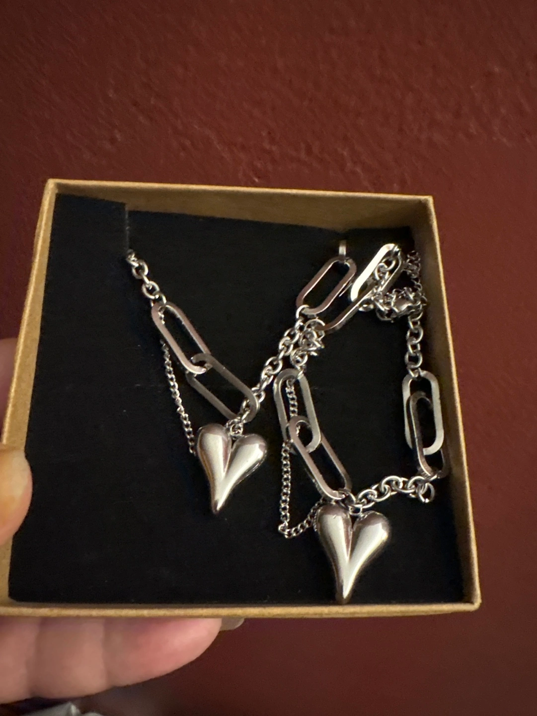 Matching necklace and bracelet set. 18K Gold Stainless Steel Silver . Heart pendants. Chain links. New with Box and cleaning Cloth