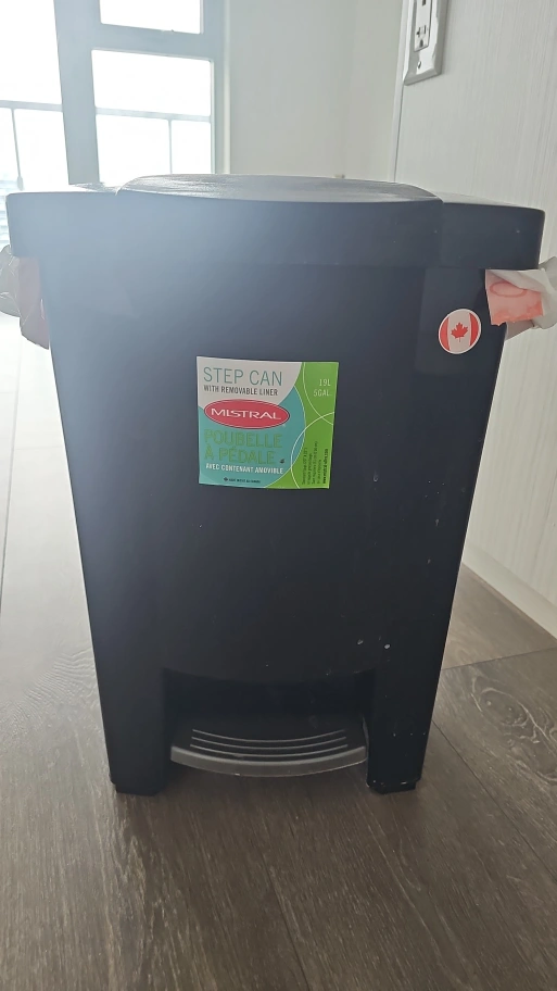 Black step can with removable liner. 18L capacity. Foot pedal operation. Good condition. selling because moving out of country
