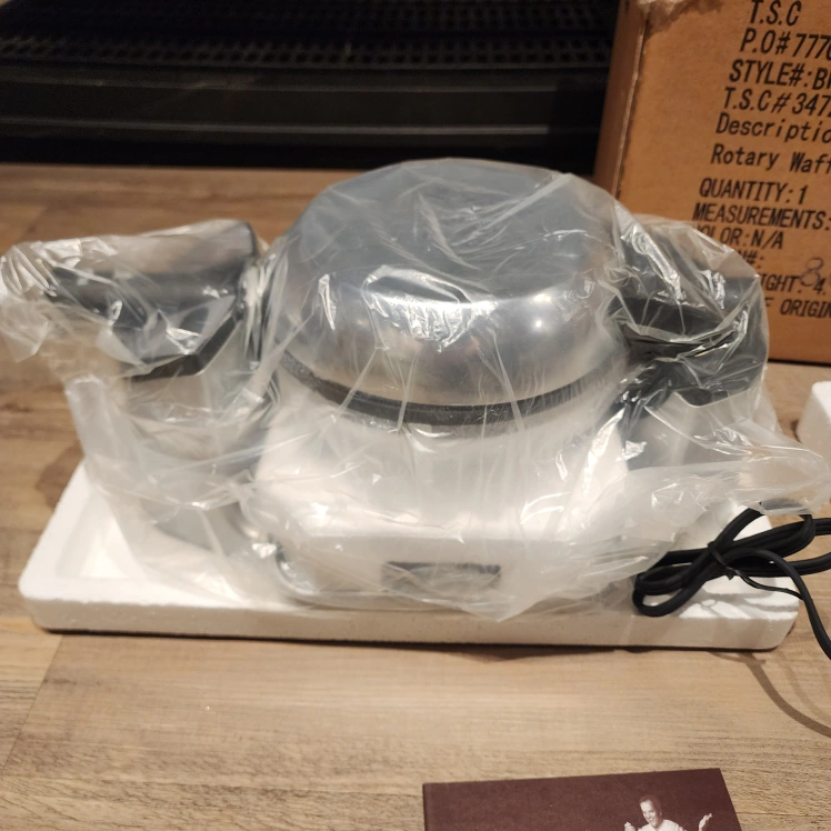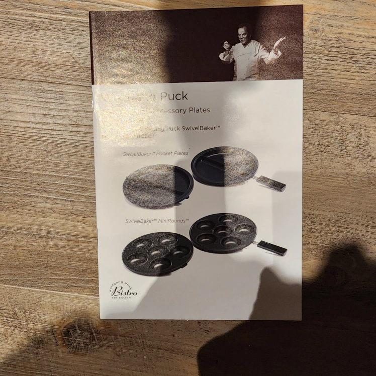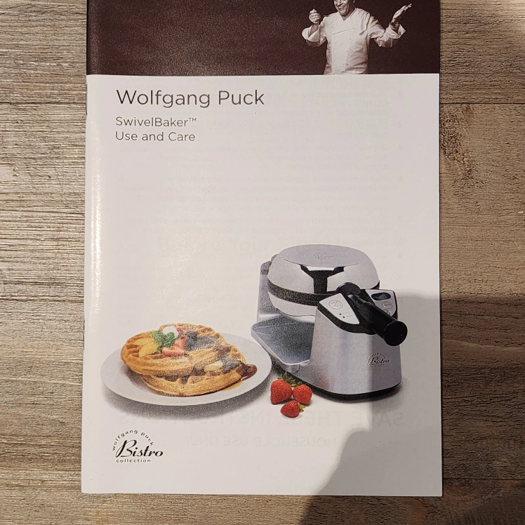 Brand new, never used Wolfgang Puck SwivelBaker waffle maker. Includes original box and instructions. Also comes with extra plates. Rotary waffle iron. Great for making waffles.