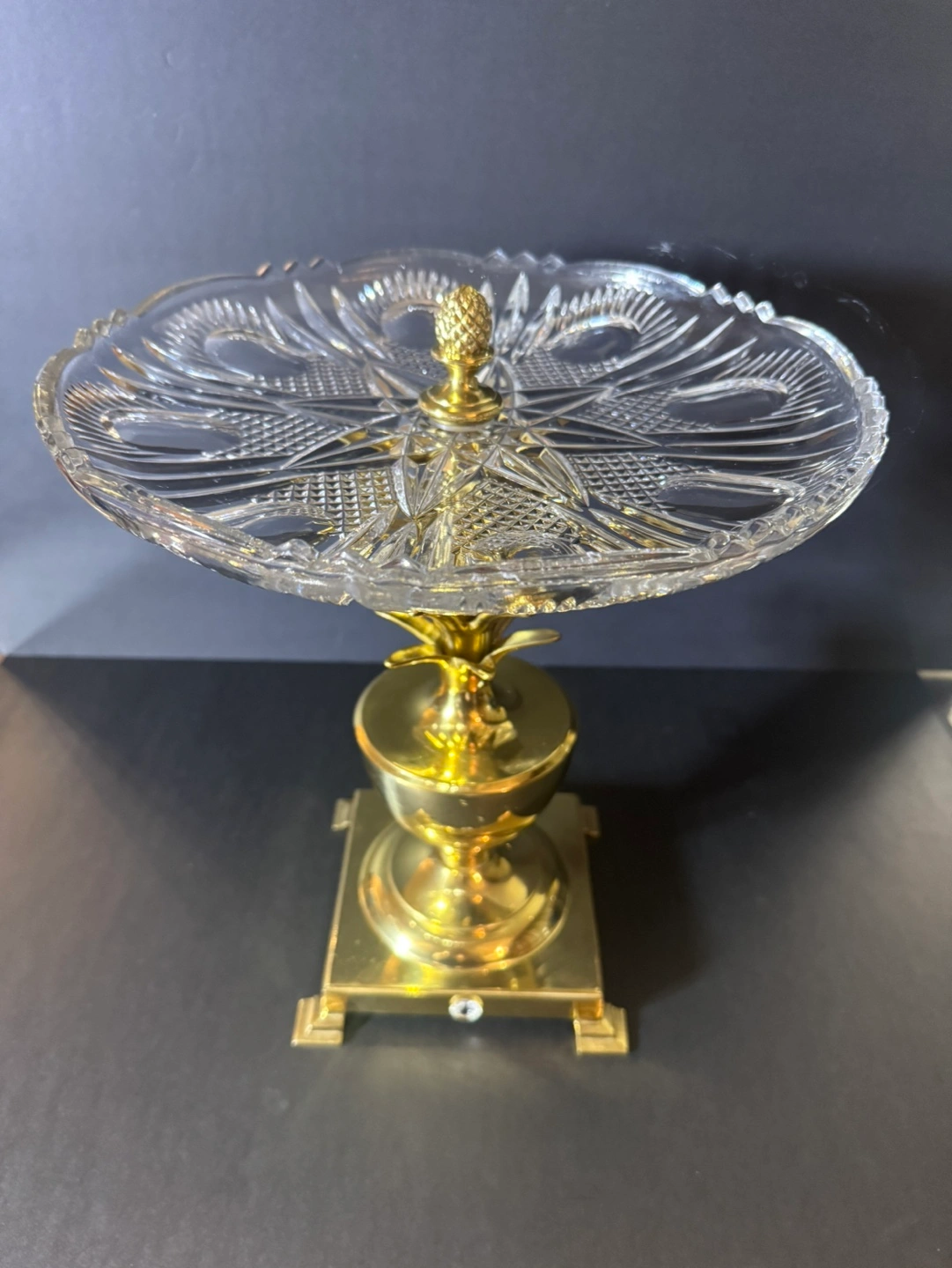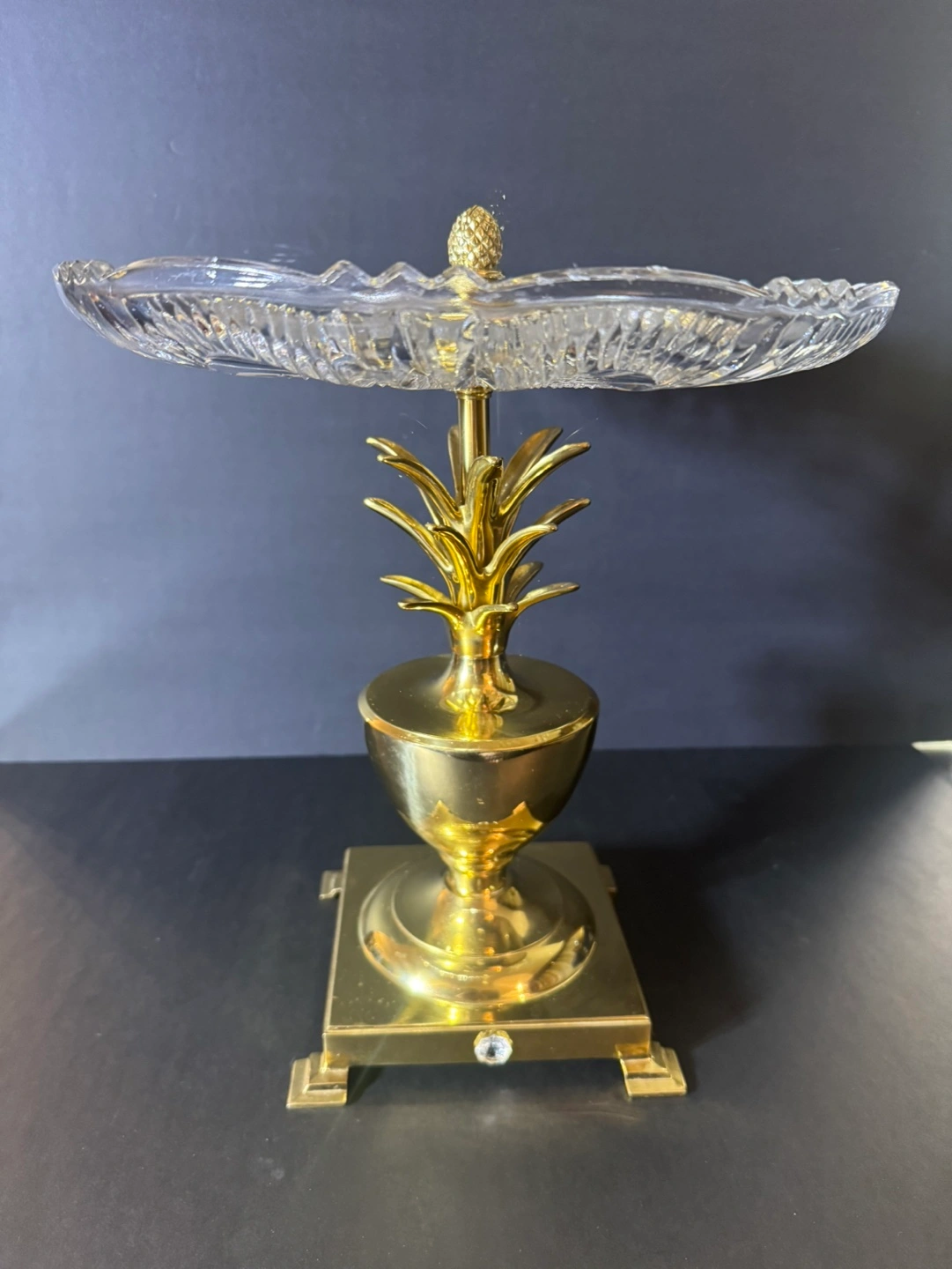 Elegant vintage serving stand. Features a crystal plate and brass pineapple-shaped base. Perfect for displaying treats or as a decorative accent.High 14 inches,diameter 12 inch