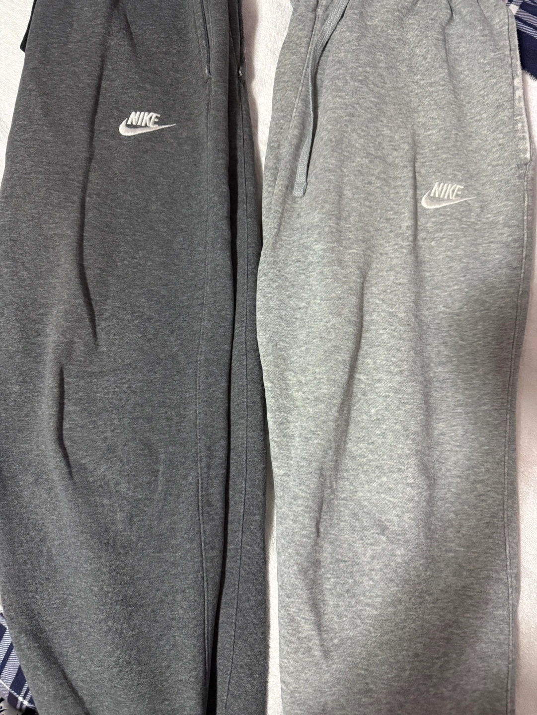 2 Pairs of Nike sweatpants. Two colours: dark grey and light grey. Size small and medium . Drawstring waistband. One back pocket. pickup se copperfield