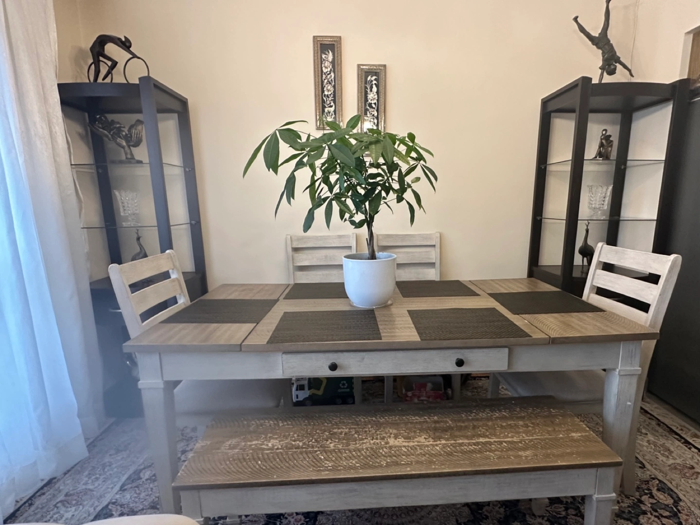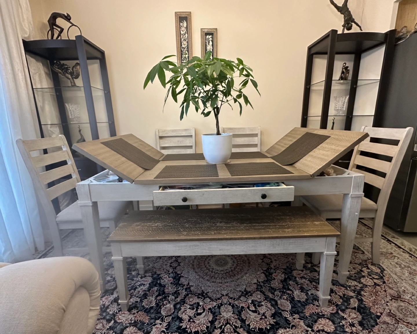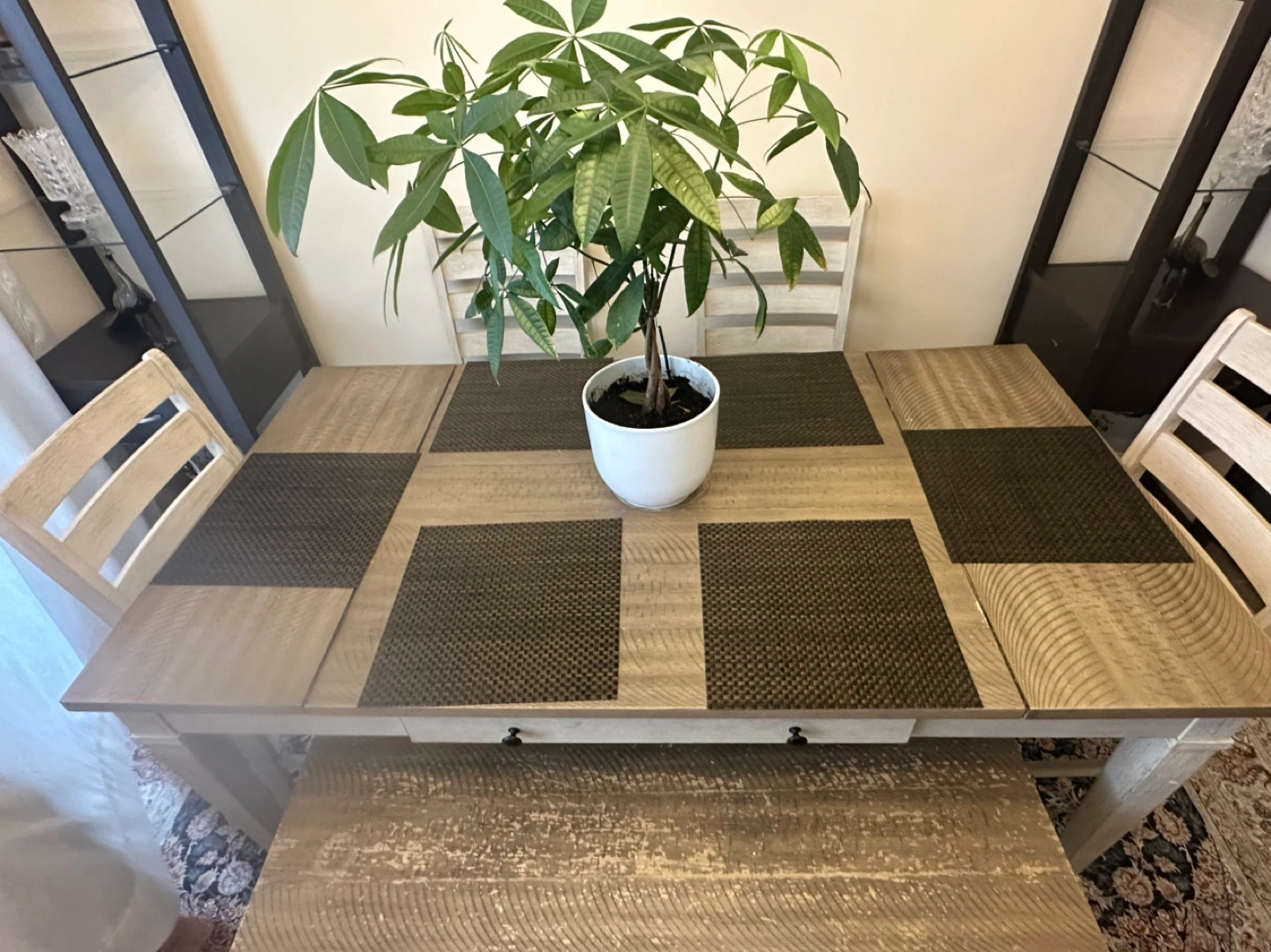 45I’m selling my Skempton Dining Table Set (4 Chairs + Bench) as I’ve ordered a new one arriving in a few weeks! 🔹 Gently Used – Less than a year, in excellent condition 🔹 Seats 6 Comfortably – 4 cushioned chairs + matching bench 🔹 Sturdy & Stylish – Farmhouse design, light distressed wood 🔹 Great Deal! Selling for [Your Price] (Retail: $2,739.99) 💨 First Come, First Serve! Message me to grab this deal before it’s gone! 🚀