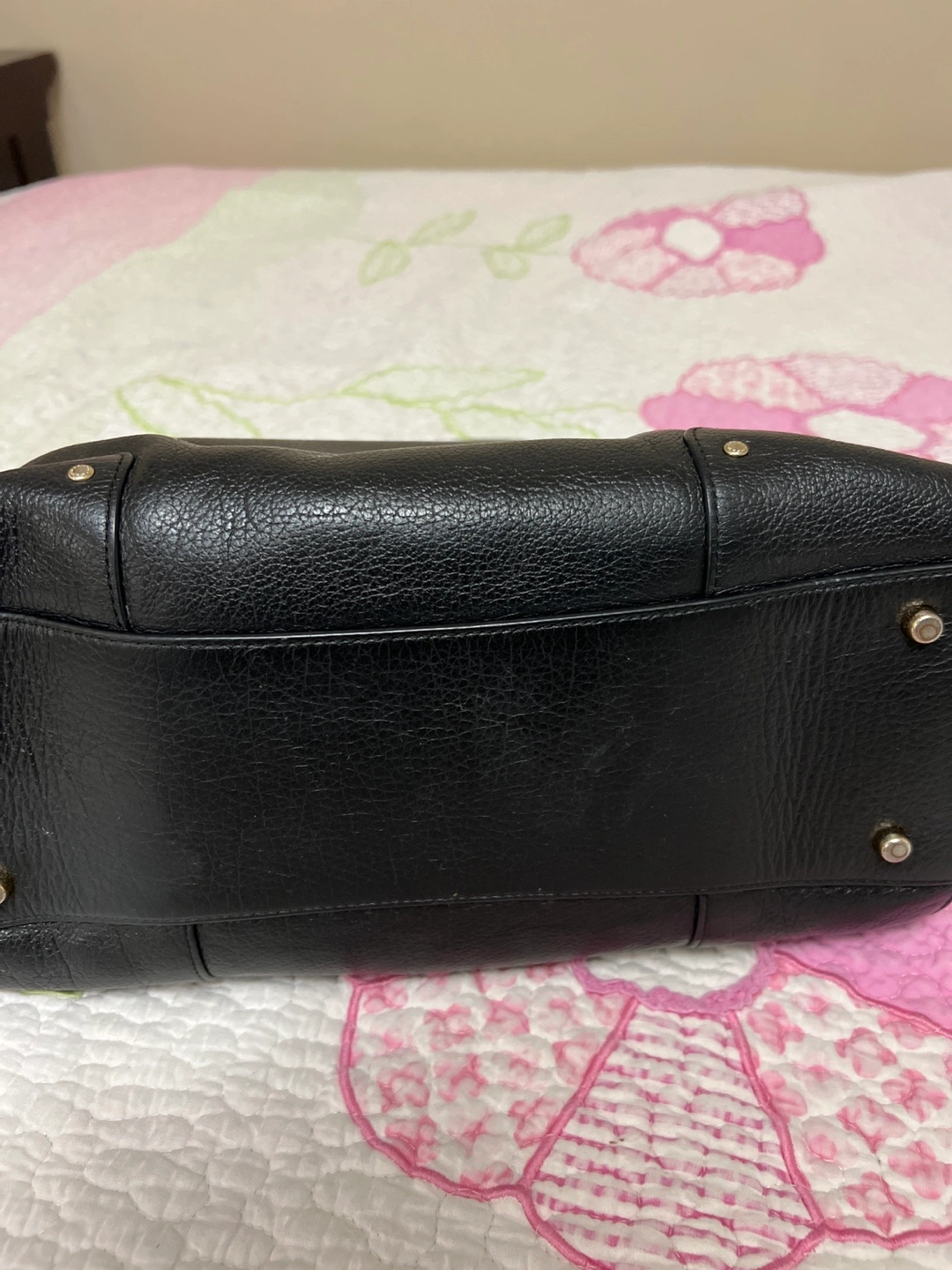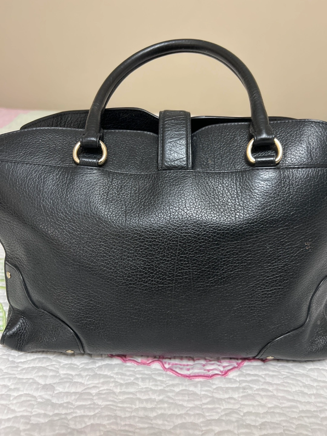 Beautiful Authentic Black leather handbag. Top handles and a detachable shoulder strap. Gold-toned hardware. Interior pockets. Zip closure.