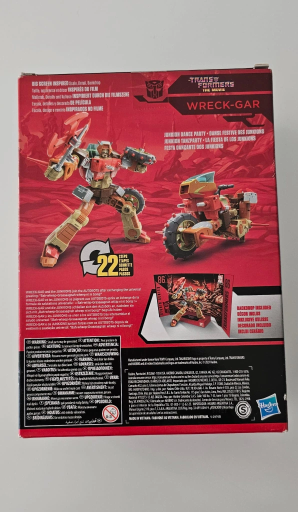 New in box. Studio Series 86 Wreck-Gar. Transformers The Movie. 22 steps. Includes backdrop. Big screen inspired. Collectible figure.