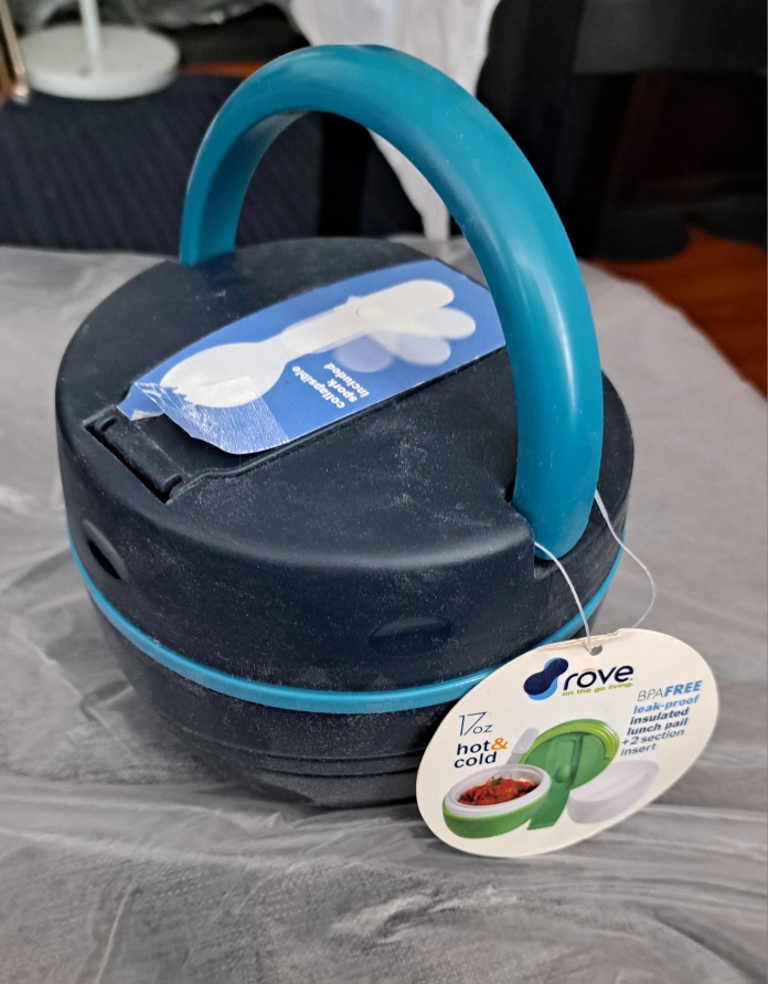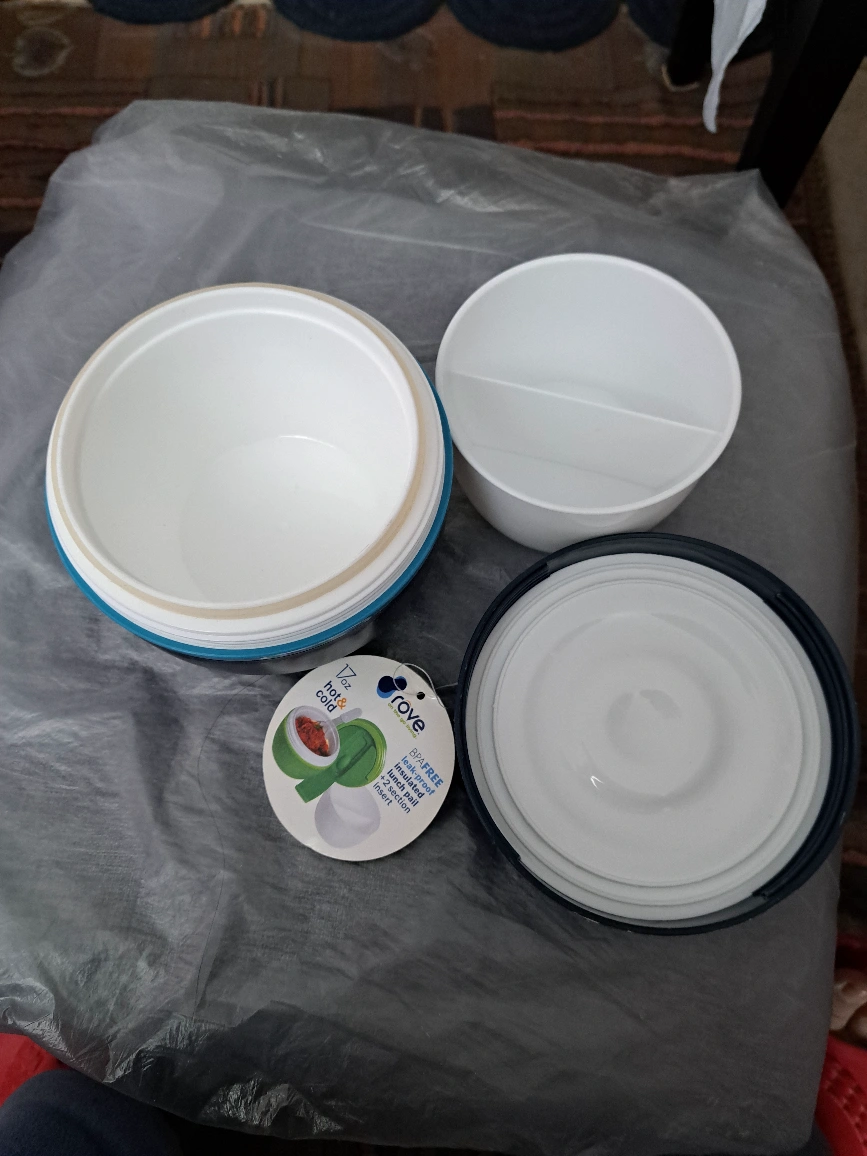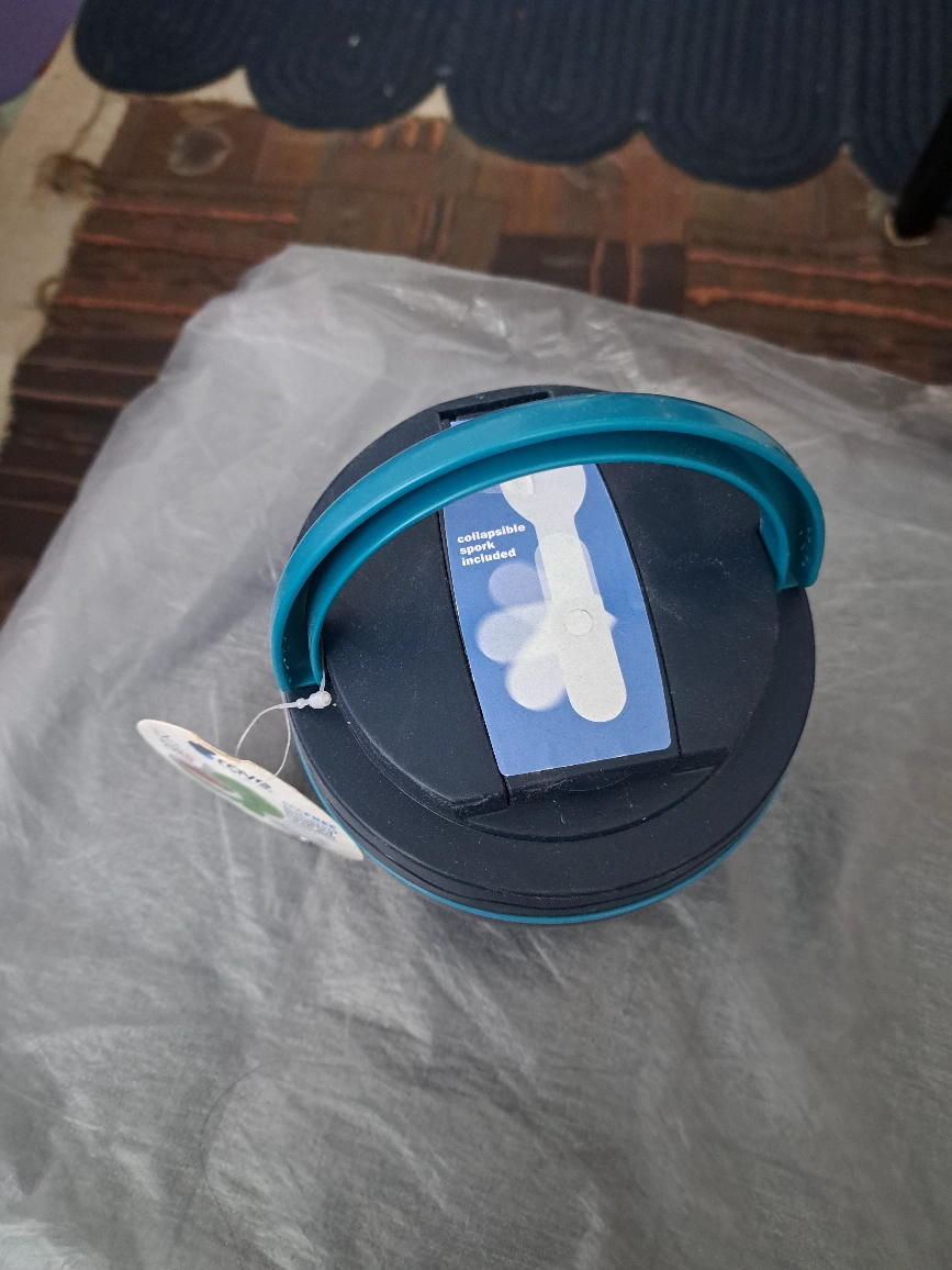 Brand new BPA-free food container. Keeps food hot & cold. Includes 2 sections and collapsible spoon. Leak-proof and insulated. features and benefits *insulated double wall construction - maintains contents temperature longer * flip up handle for space efficient storage * twist-on lid with silicone seal prevents leaks * unique built-in storage for spork * built in finger. grooves make opening and closing effortless * micowaveable pick up and cash only