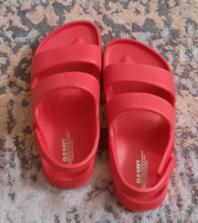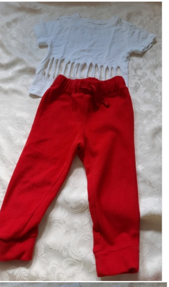 Old Navy Red toddler sandals, size 10. Adorable two-piece outfit; white shirt with cut-out detailing and red joggers. Great for summer.