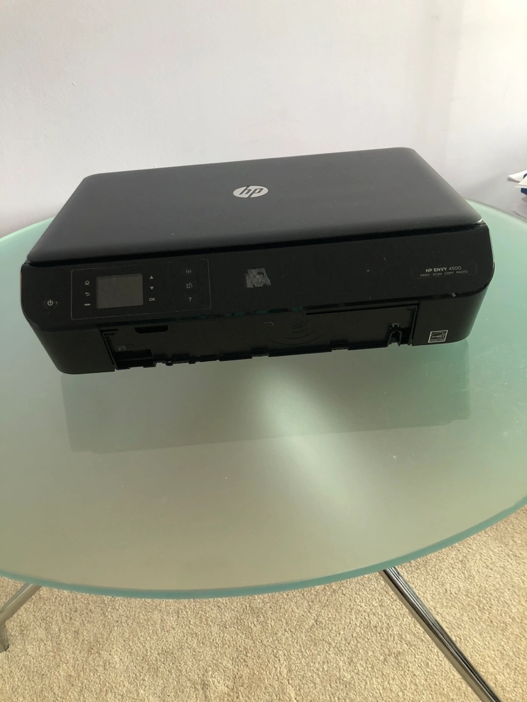 HP ENVY 4500 all-in-one printer. Prints, scans, copies, and handles photos. Energy Star certified. Used condition.