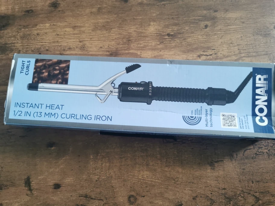 New Conair curling iron. 1/2 inch barrel. Instant heat. Creates tight curls. In original packaging.