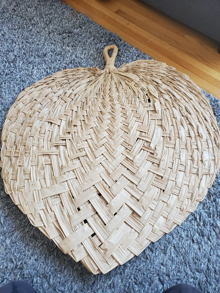 Unique handcrafted palm leaf fan. Intricate woven design. Neutral beige colour. Perfect for wall decor or a craft project.My husband's grandparents kept some very unique things such as this. Upon some research it is from the 1970s made from palm trees. It is still very strong and measures at roughly 23.5" long by 30" wide. Located northside by londonderry mall.
