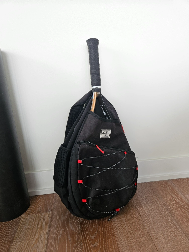 Tennis rack cross body bag in mint condition. Holds 2-3 rackets, balls, water bottle etc comfortably. Located in Parkdale, can ship anywhere cheaply.