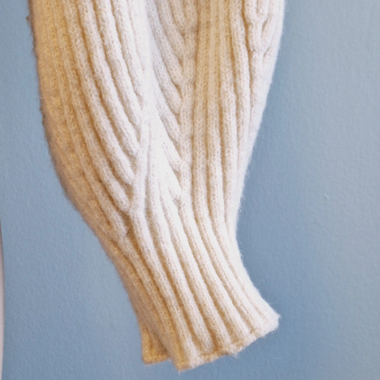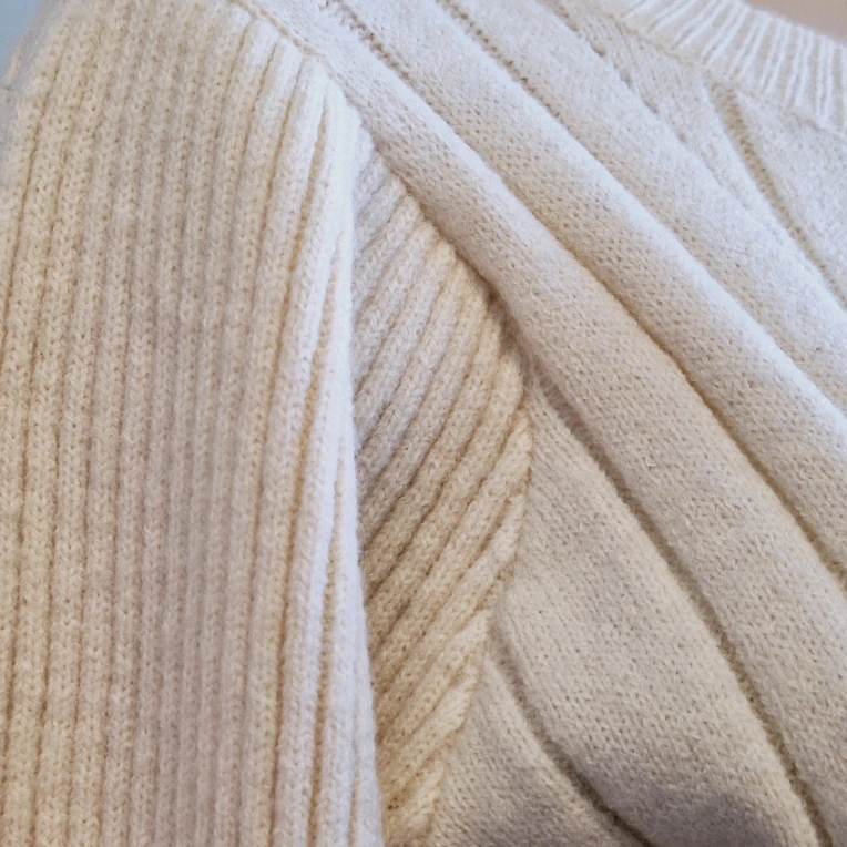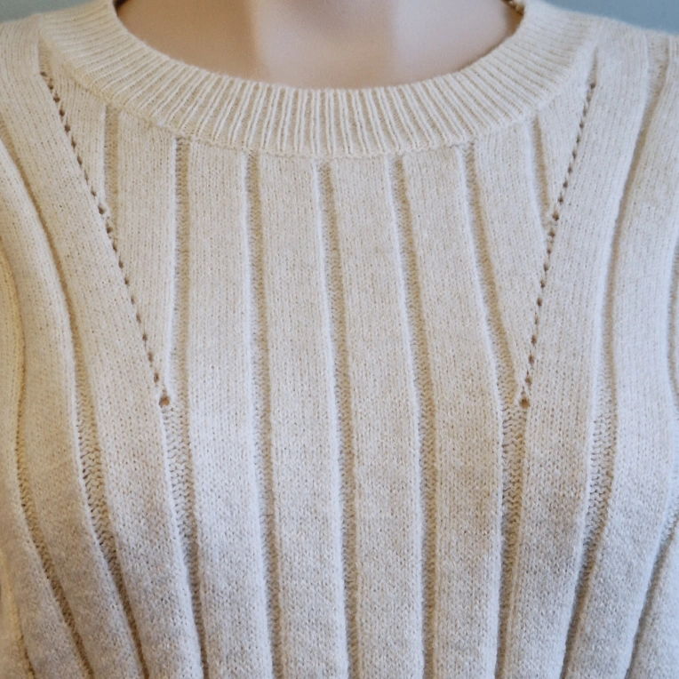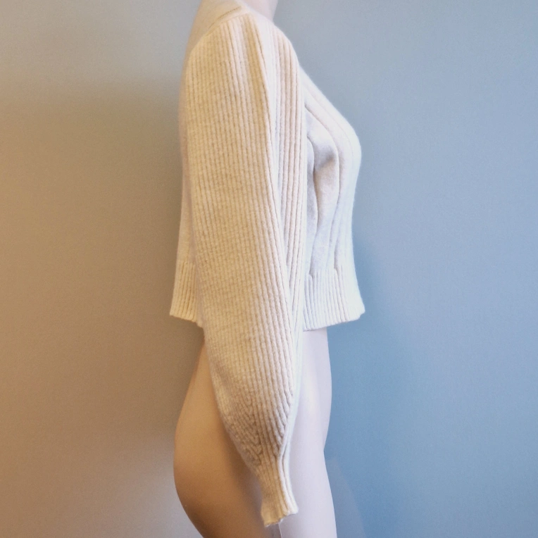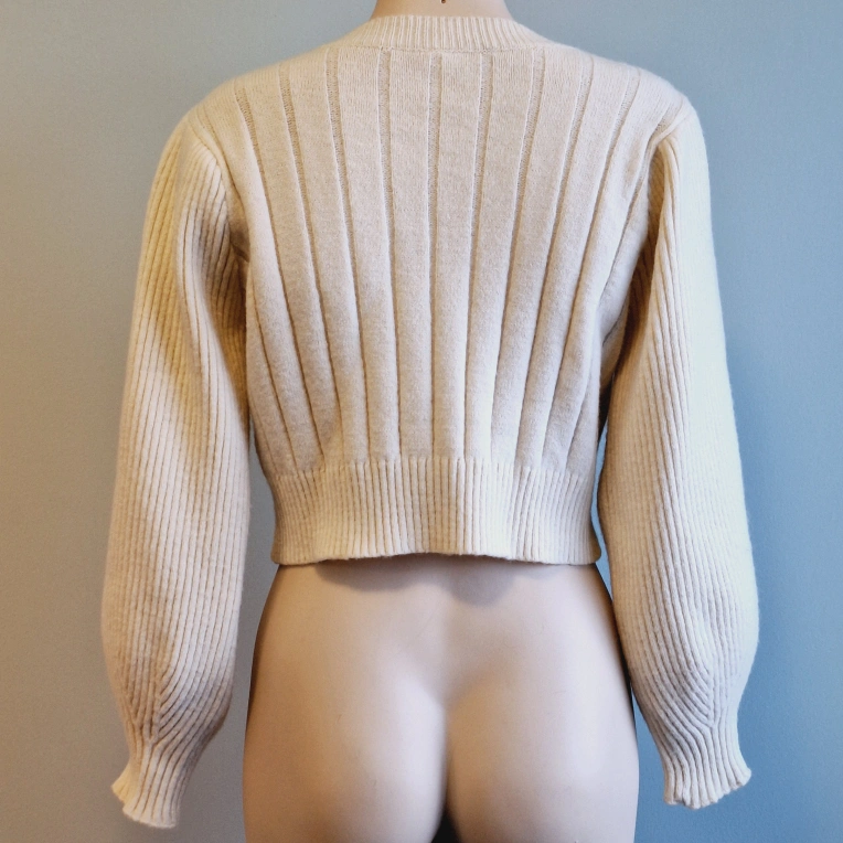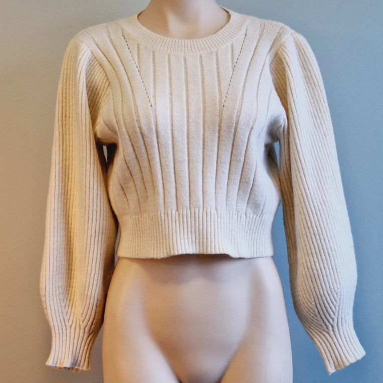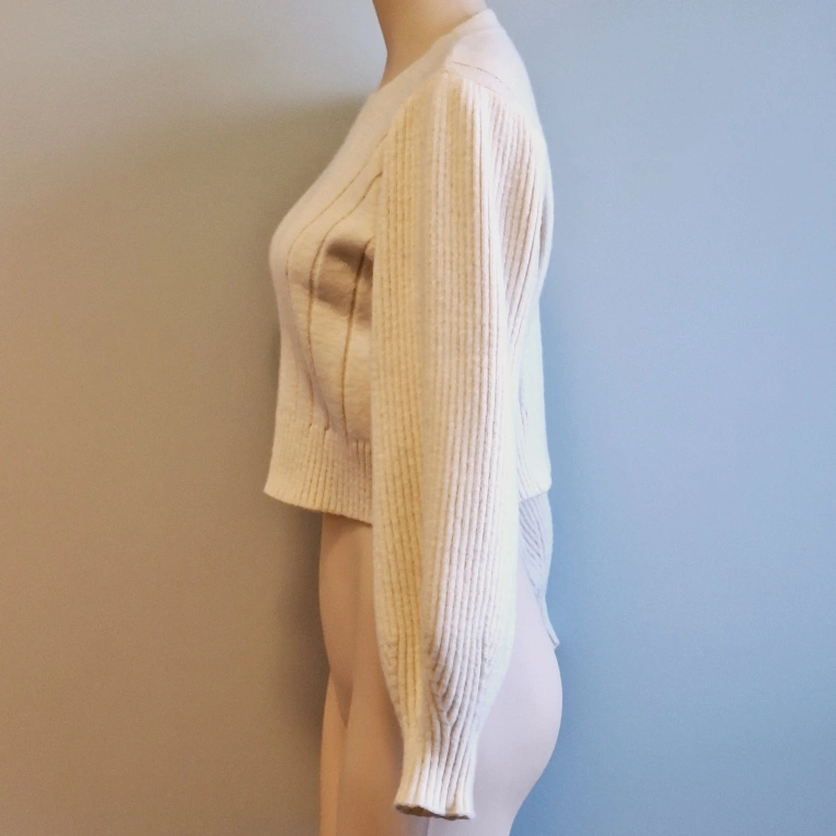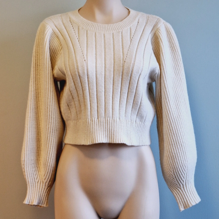 Women's cropped ribbed knit sweater. Off-white colour. Long sleeves. Relaxed fit.