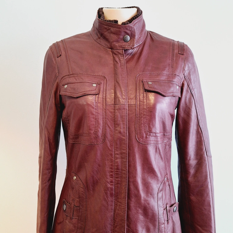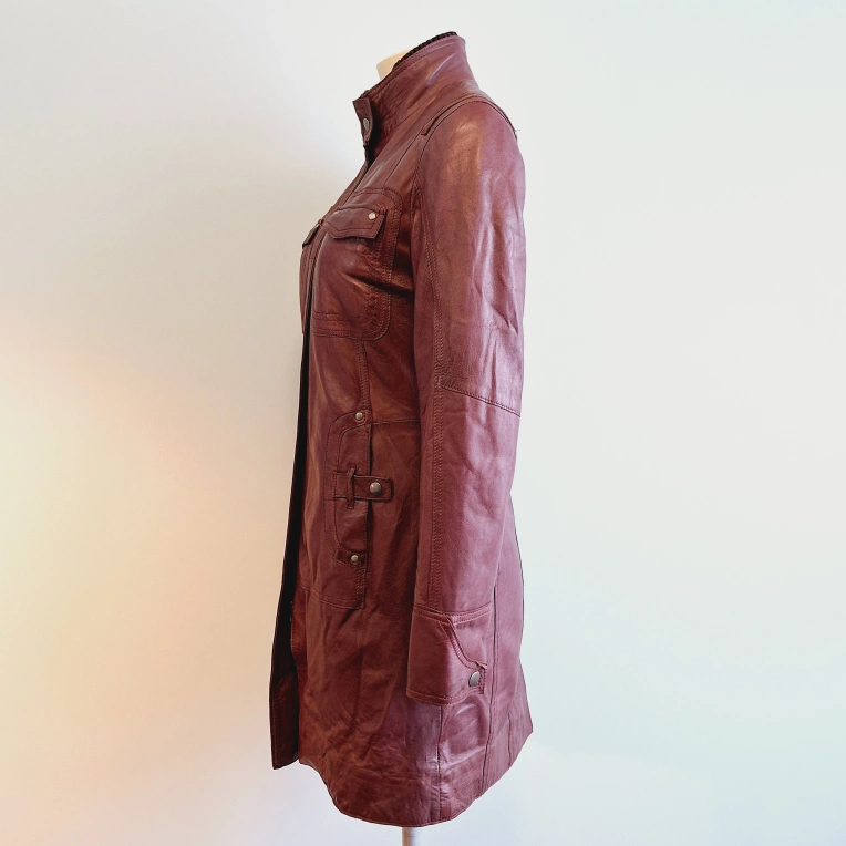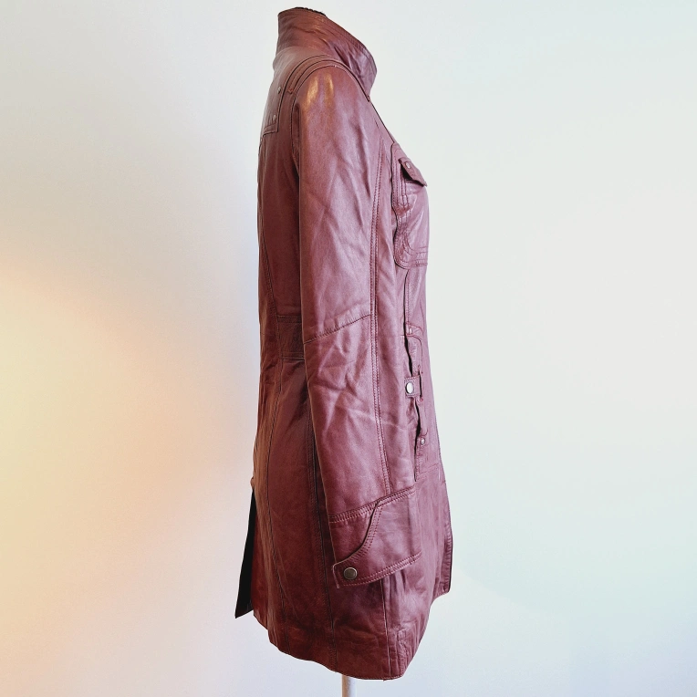 🏈 Women's Burgundy Leather Coat