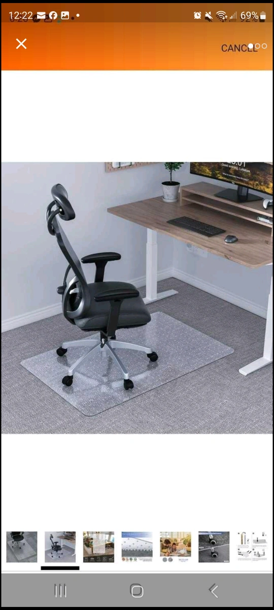 Transparent chair mat protects carpet from damage. Non-slip backing keeps it in place. Suitable for low pile carpets up to 1/2 inch. Measure carpet pile length before purchasing.