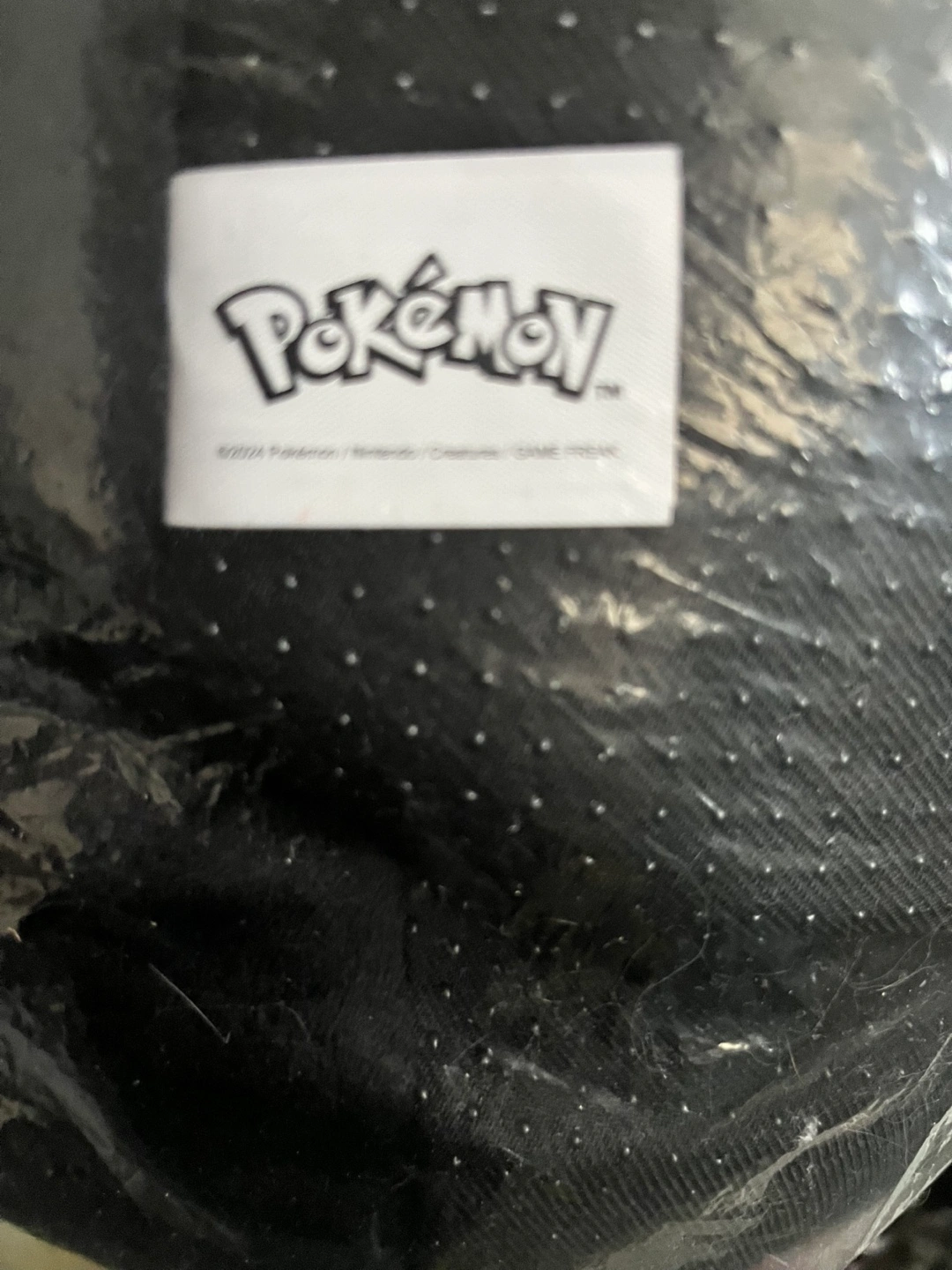 Large floor cushion. Features a red and white Poké Ball design. Black fabric on the back with nubs to prevent sliding. Zipper closure. Brand new, still in plastic packaging.