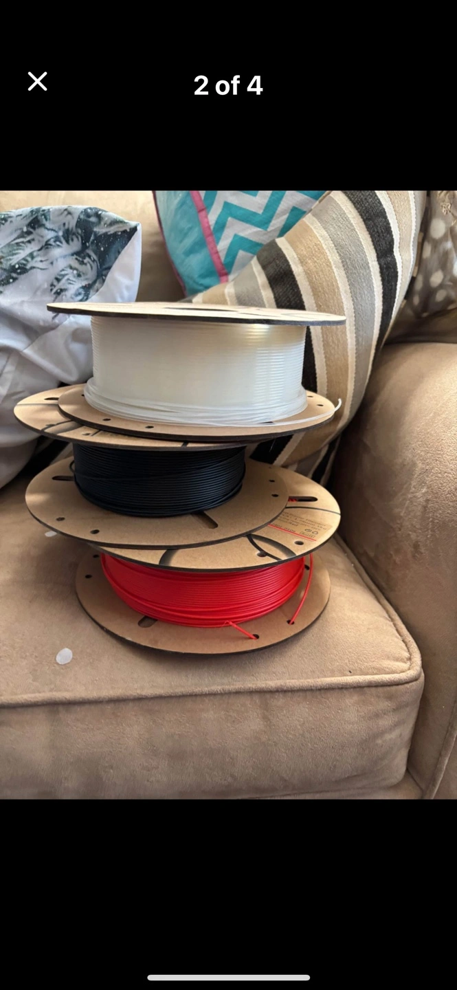 Multiple spools of ELEGOO 3D printer filament. Assorted colours including red, black, white and light blue. 1kg spools. 1.75 +/- 0.02mm diameter.