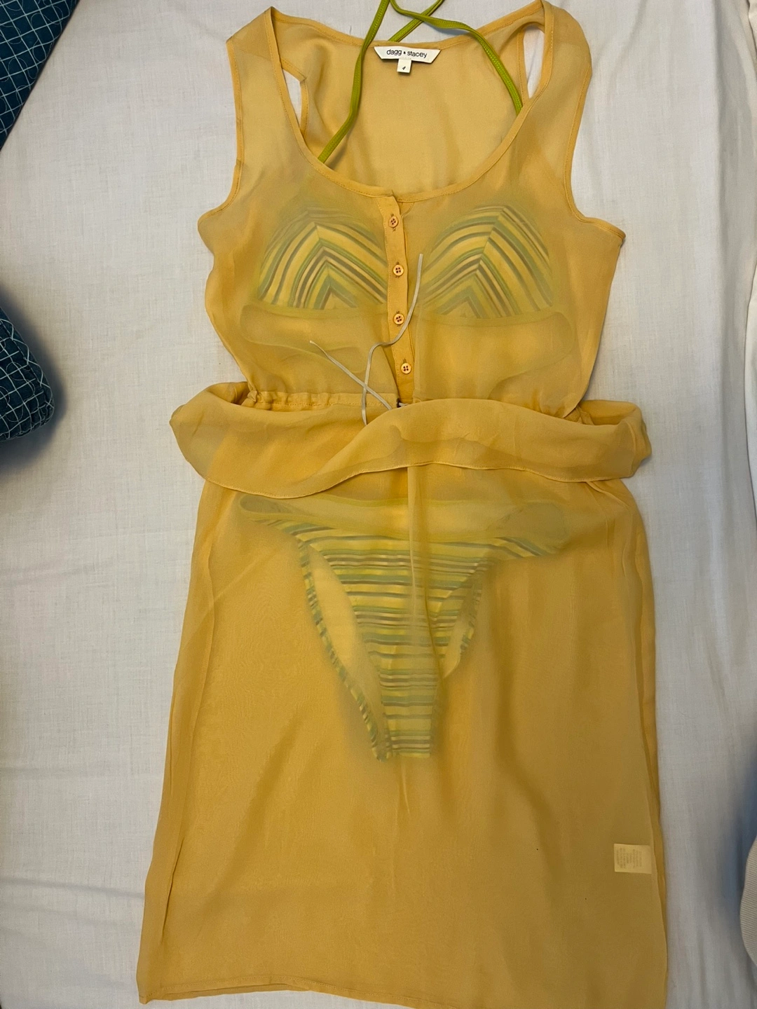 Gorgeous yellow sheer beach coverup dress. Size 4. Perfect for summer or a vacation getaway