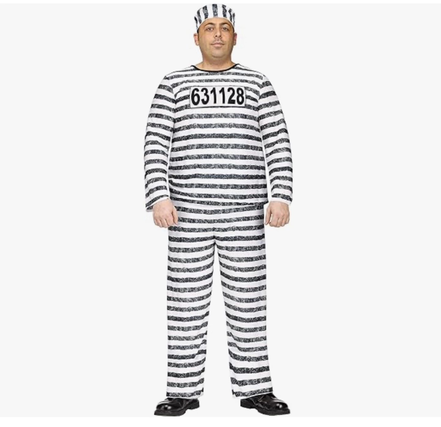 Fun World Jailbird Adult Costume, Plus Size Brand new in original packaging One size fits most up to 6ft 2in / 300lbs
