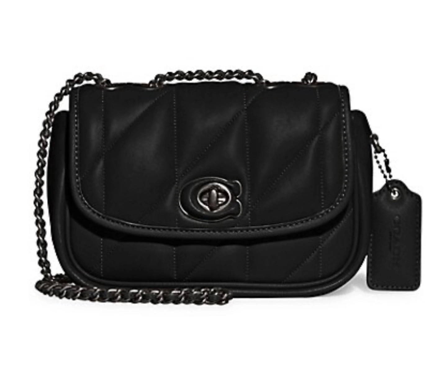 Black quilted leather bag. Chain strap can be worn crossbody or on shoulder. Exterior and interior pockets. Comes with dust bag. Purchased online on coach website, see confirmation email. Minimally used, like new.