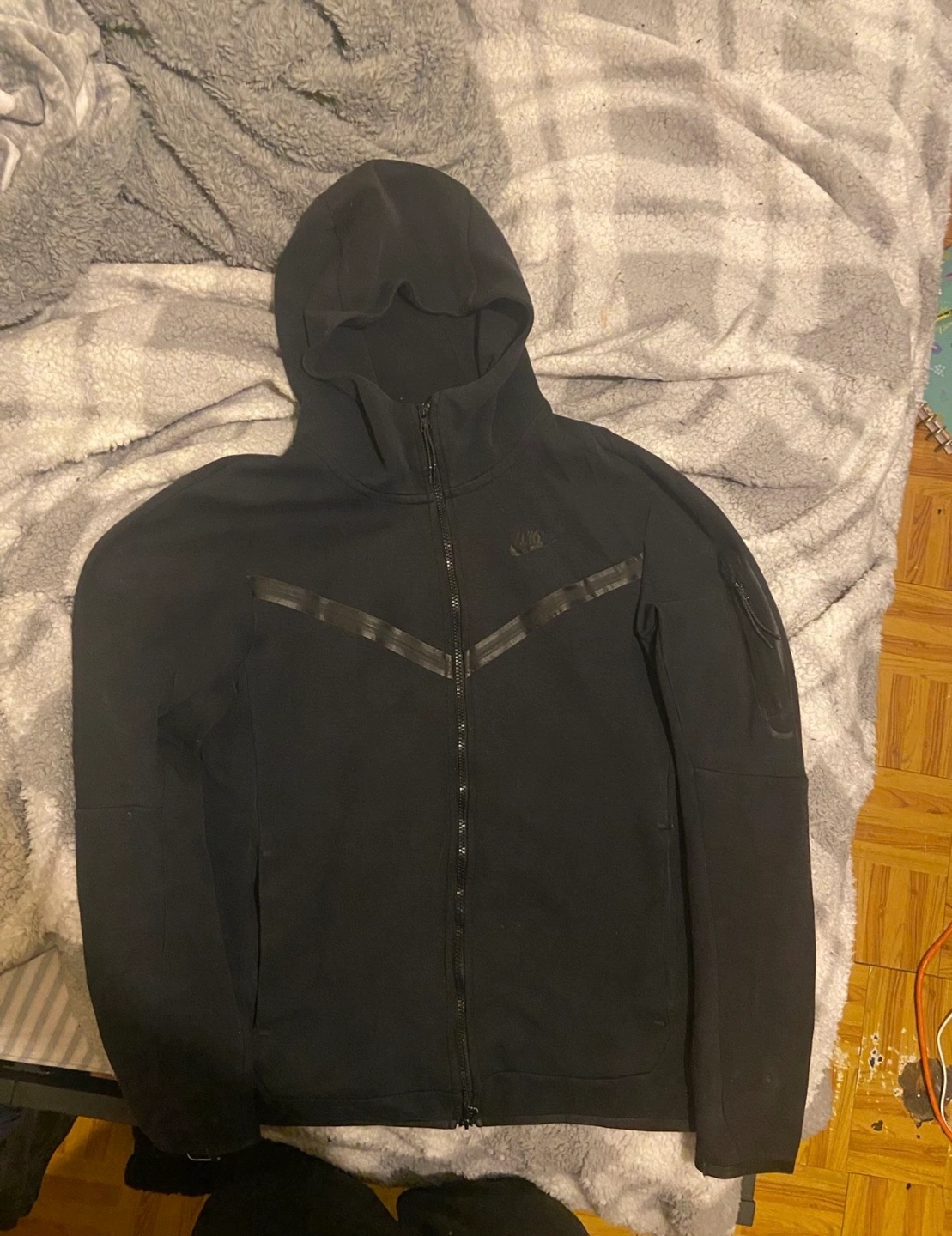 Men's Nike Tech Fleece hoodie. Full zip closure. Black color. Size small. Made in Vietnam. Also willing to trade