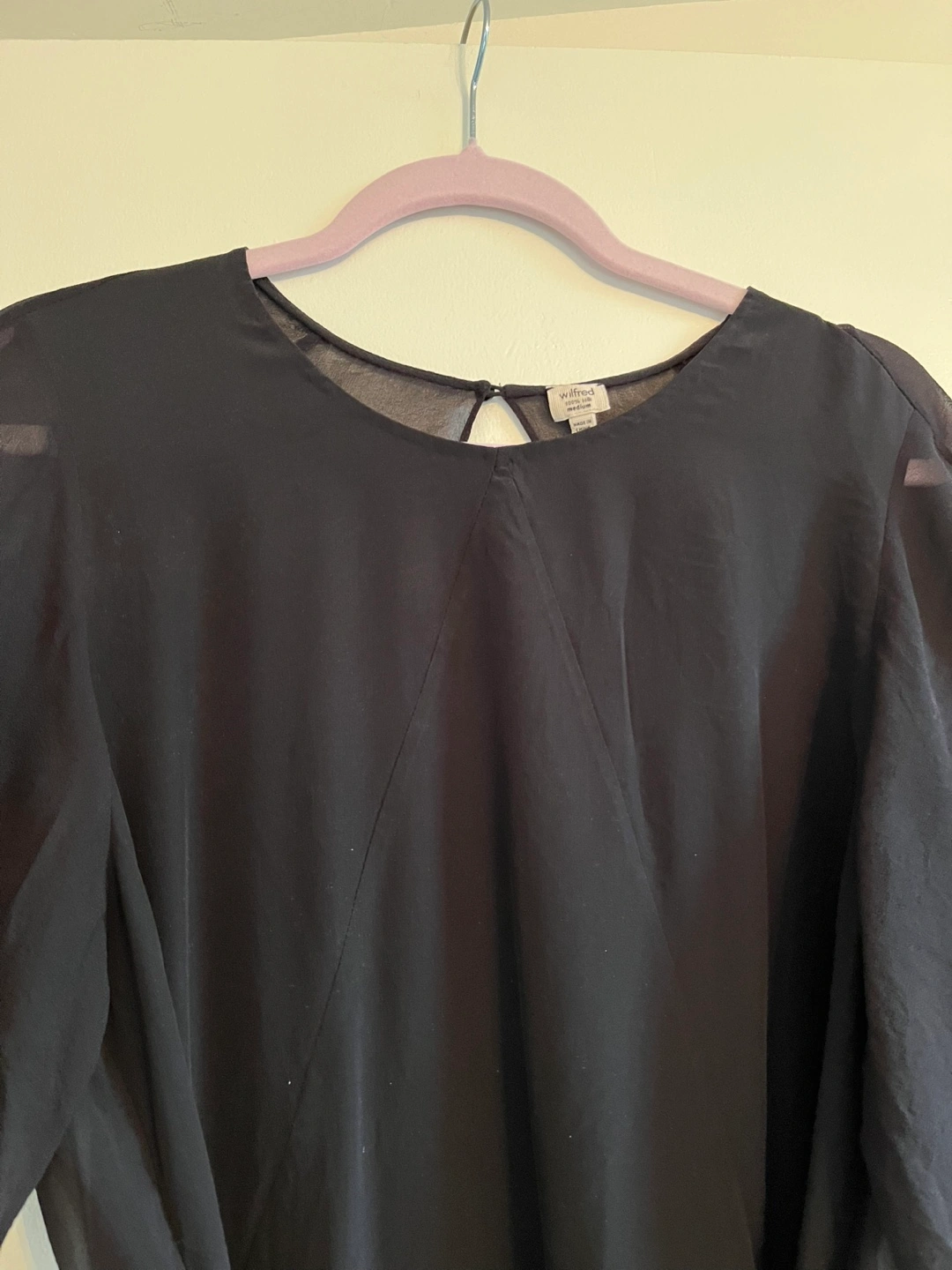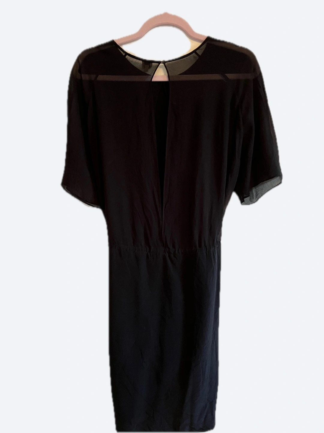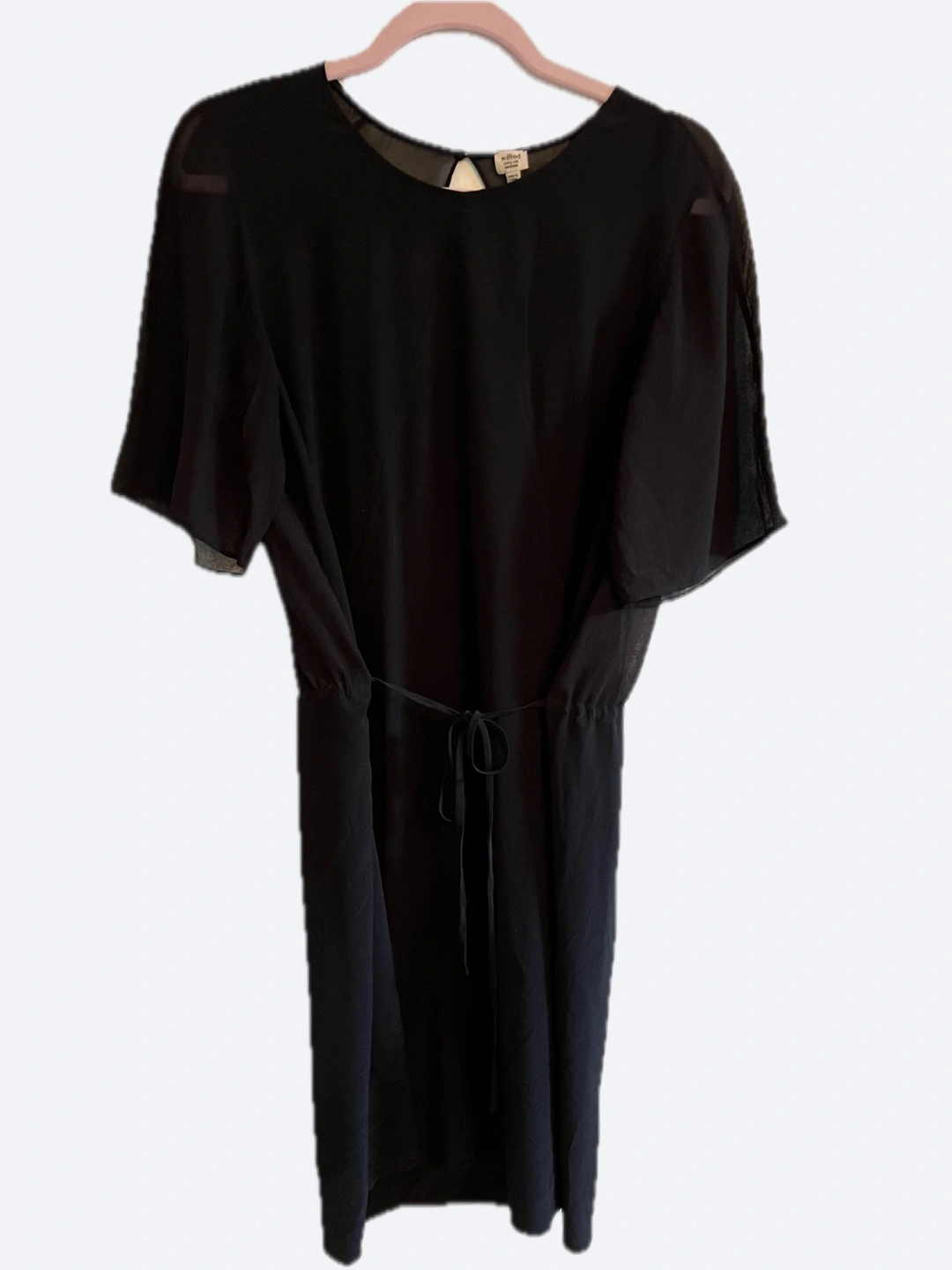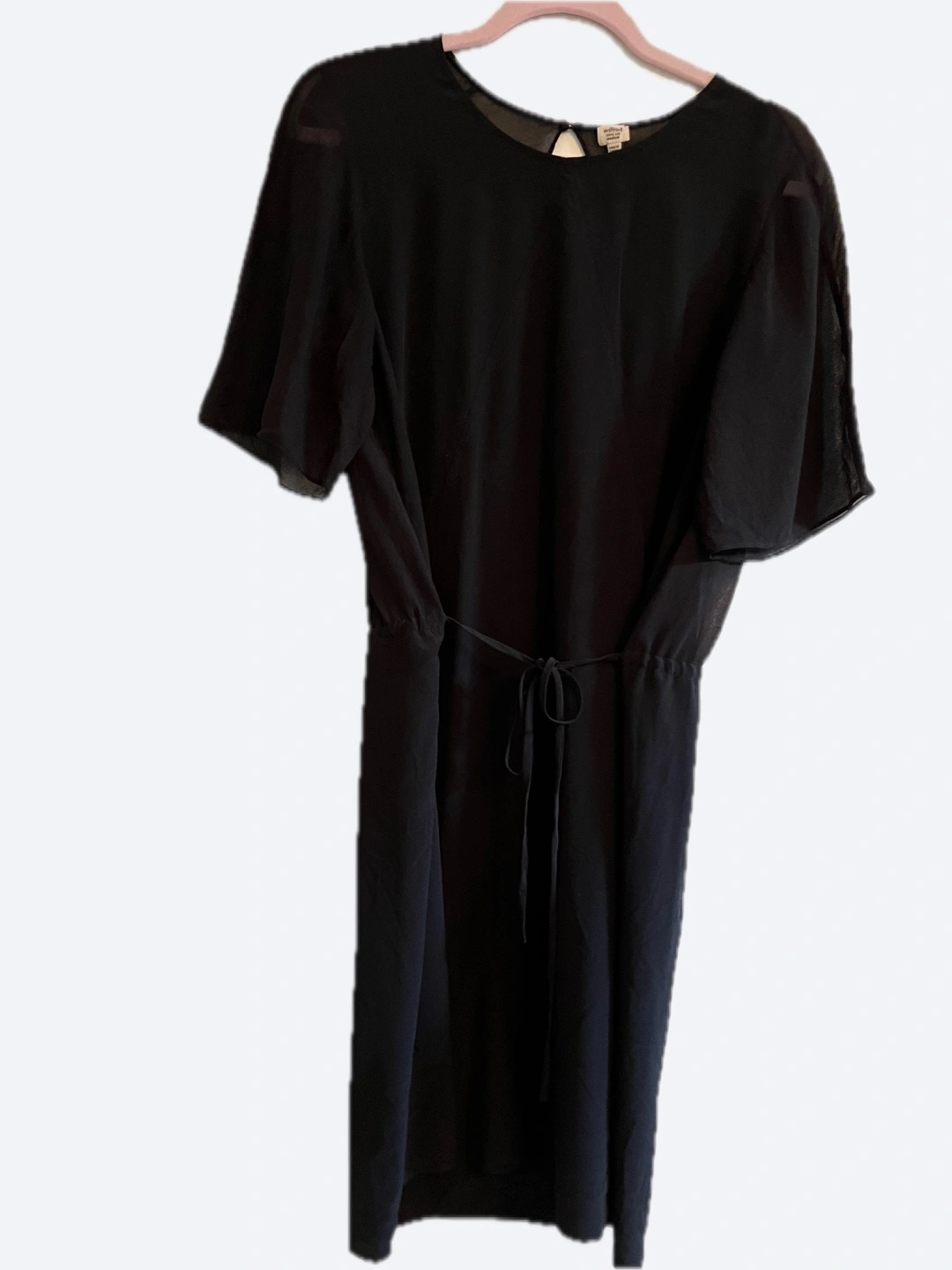 833Wilfred 100% silk dress. Sheer top and sleeves back opening with button. Tie waist and pockets. Black.