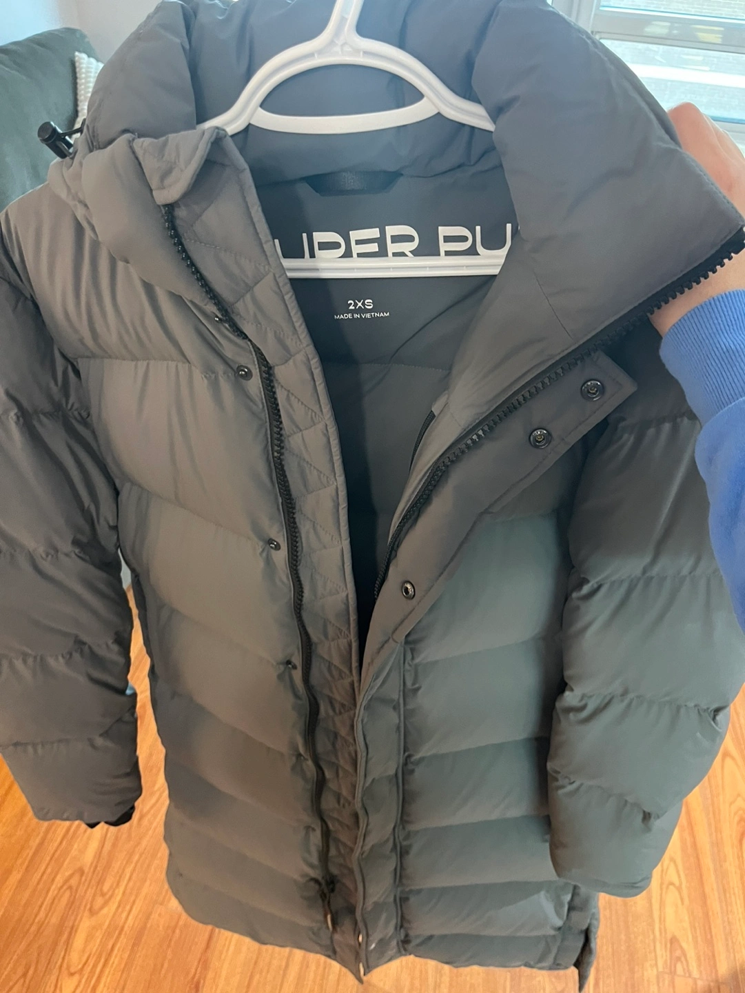 Long puffer jacket. Size 2XS. Stormwatch Grey color. Made in Vietnam. Excellent condition. Used only once - got it as a gift but too tight for me. Open to offers and trades !!!