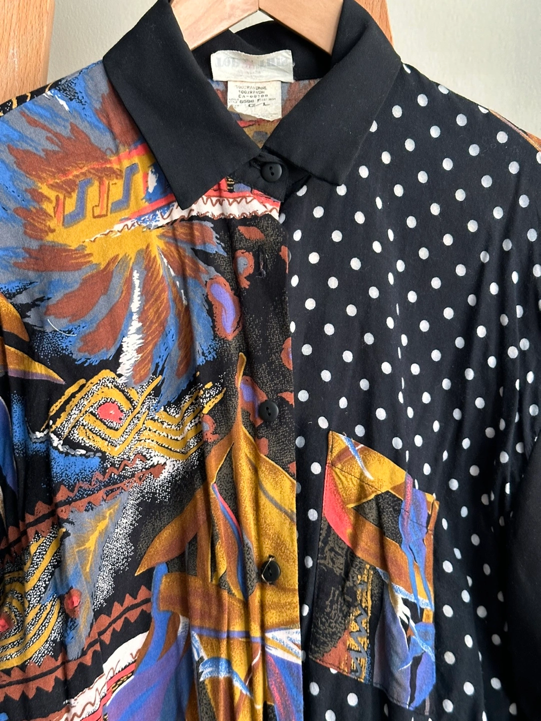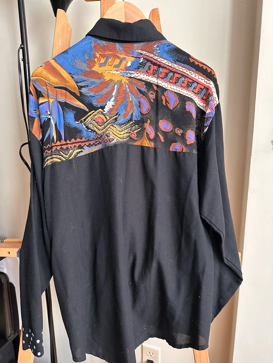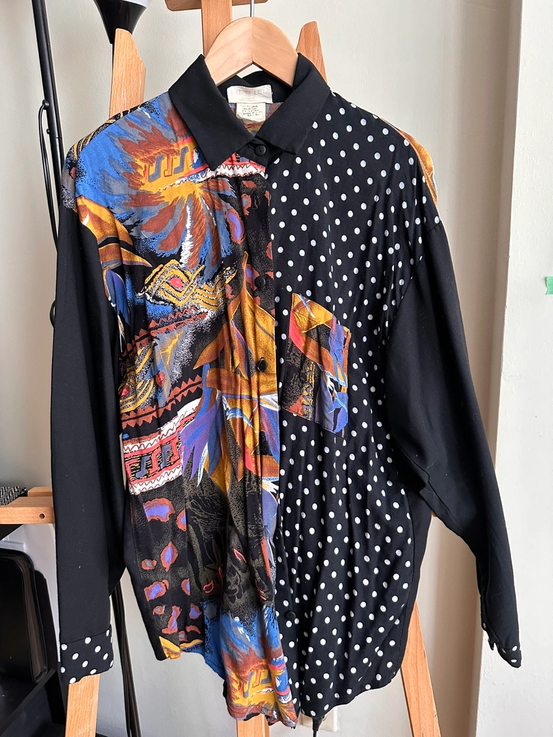 Interesting vintage design shirt I am S and using it as oversized one. In perfect pre-owned condition. Soft material. Pick up at Yonge and Bloor