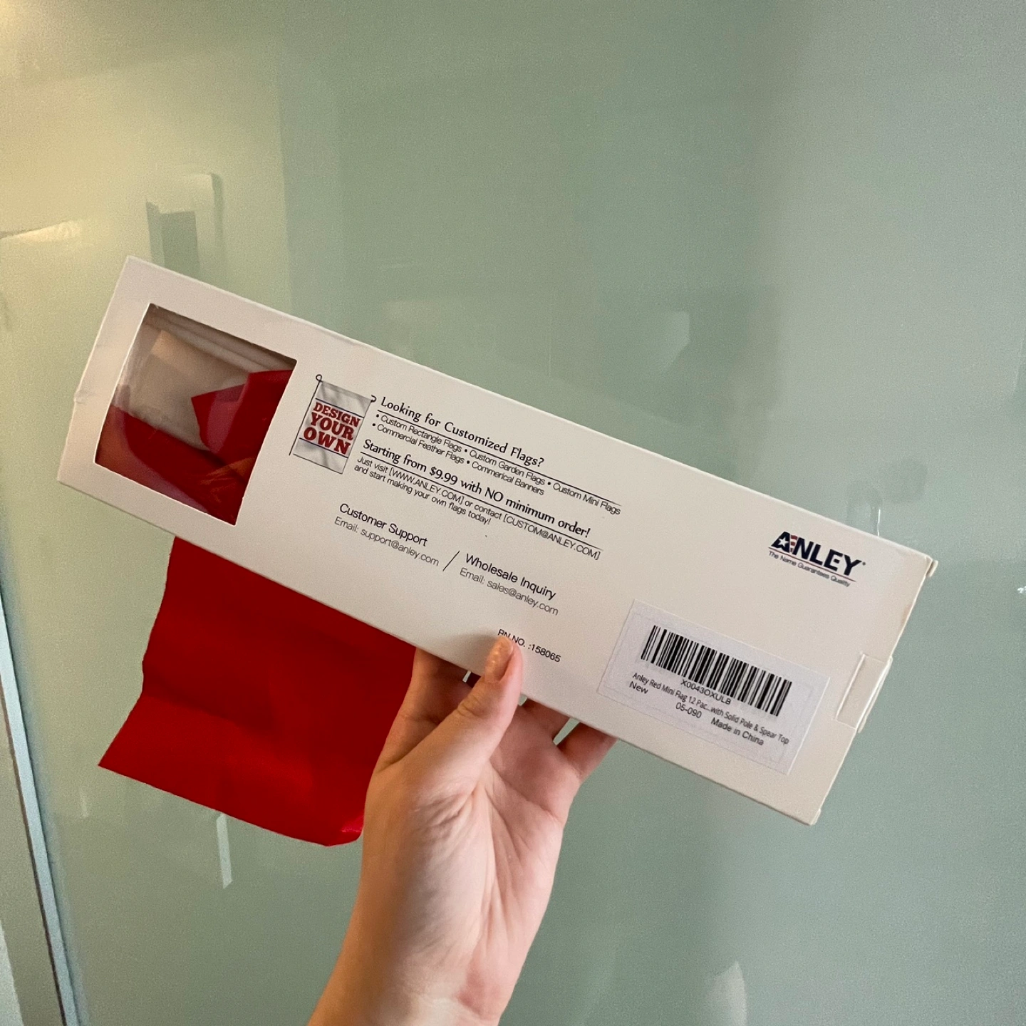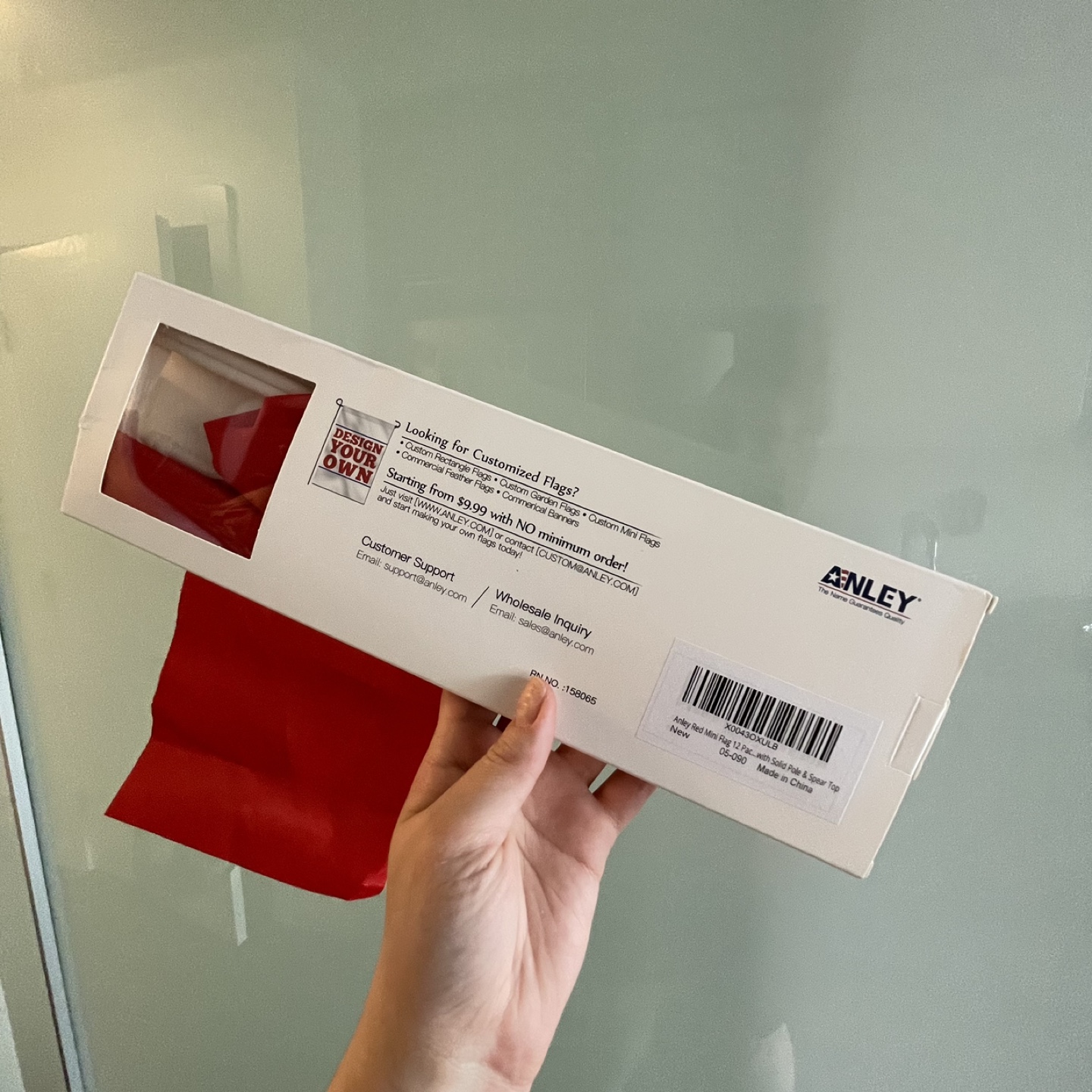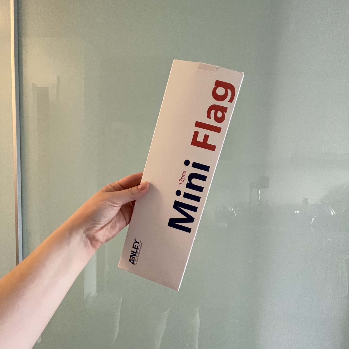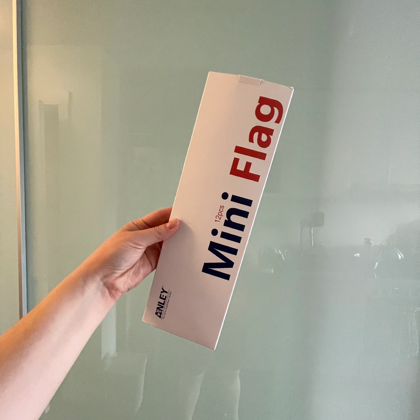 12 pack of small red flags. 5x8 inch miniature flags on sticks. Fade resistant & vivid colours. Solid pole & spear top.